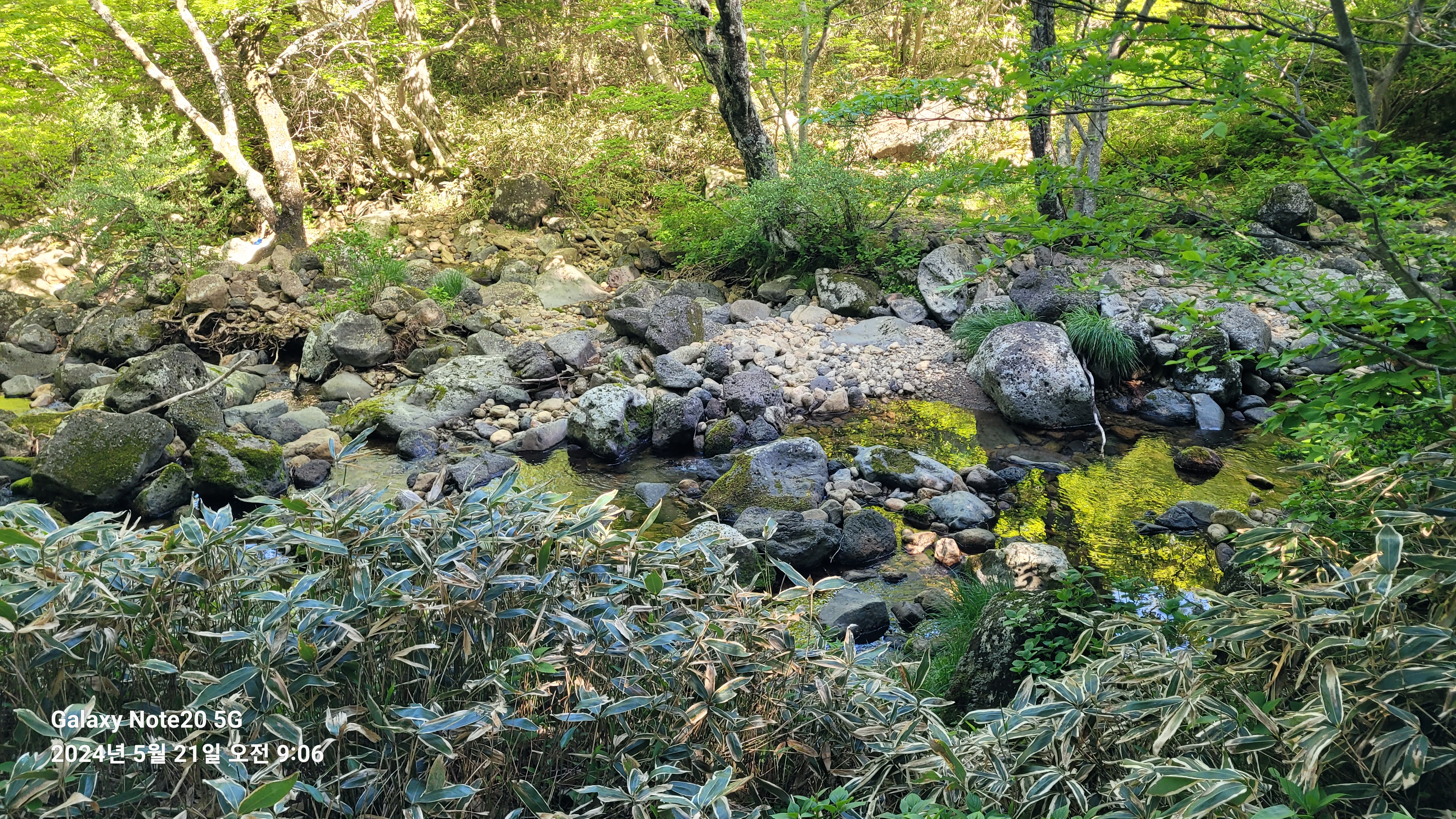 1시간 넘게 걸려 영실 매표소에서 내려 40분 정도 걸어 와야하는데 히치를 해서 쉽게 왔다