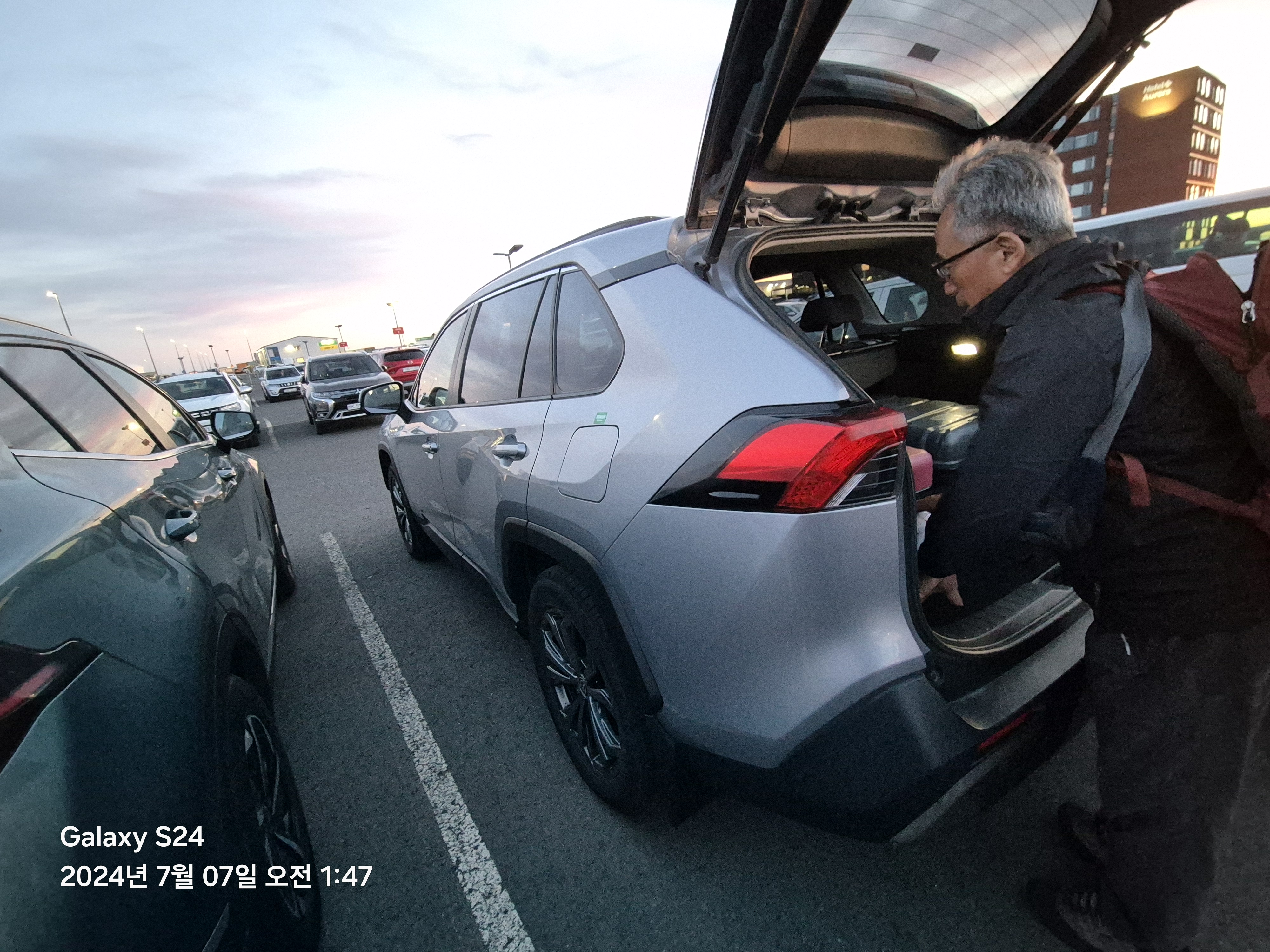 충전 때문에 다시 공항 안으로 들어가면서 본 노을