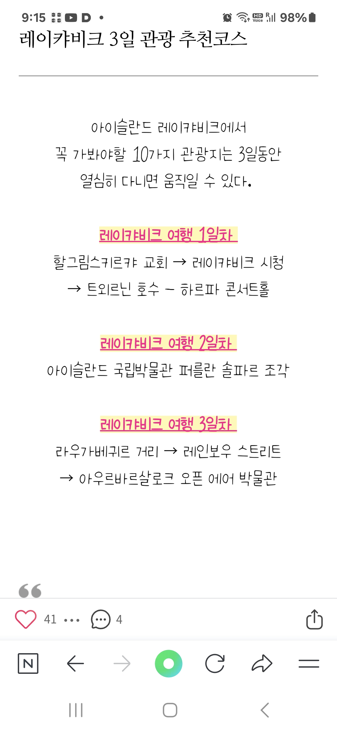 다른분들은 레이캬비크 만 3일씩 관광 한다니 놀랍다