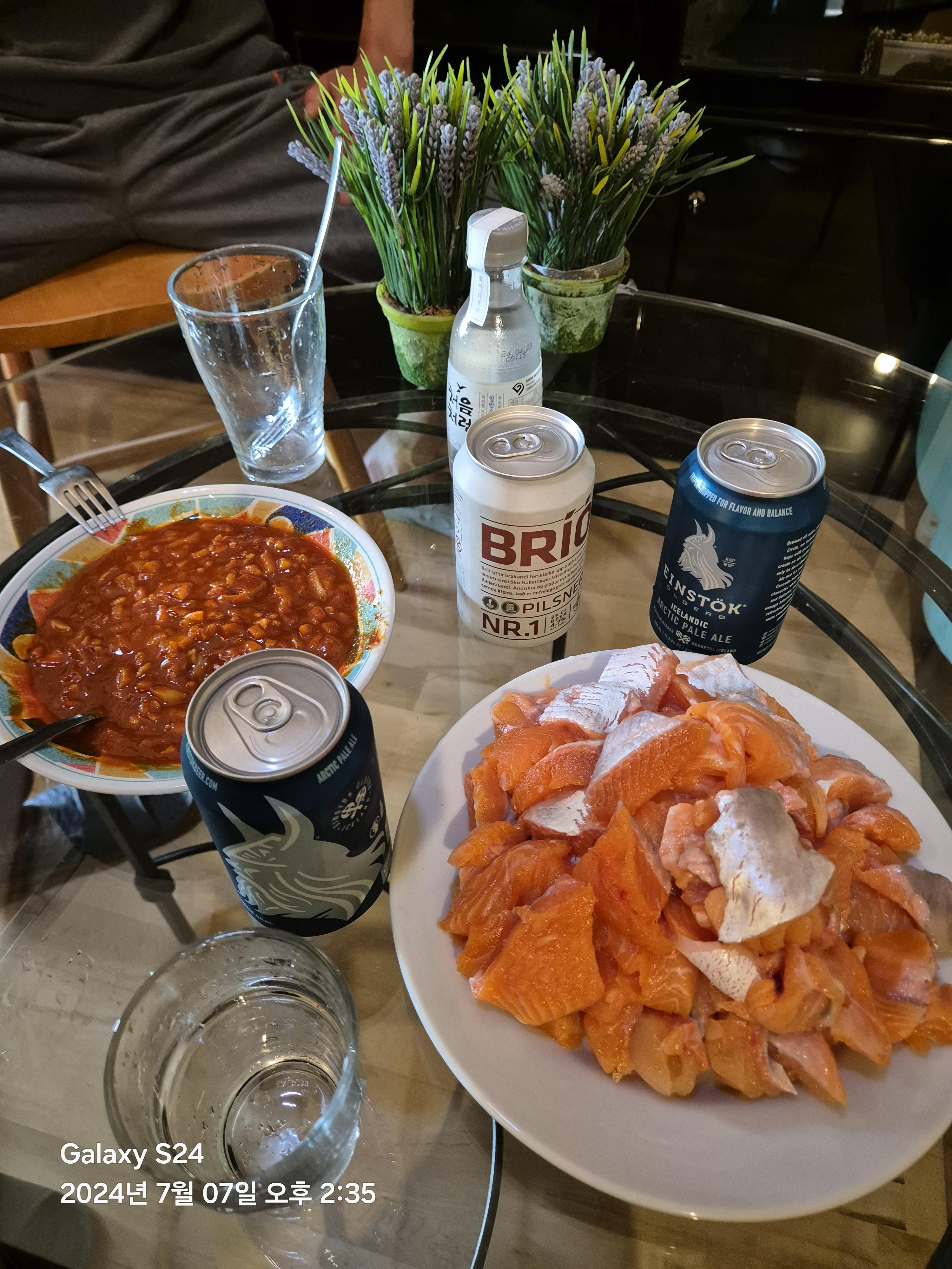 수제 초고추장과 푸짐한 연어 = 아이슬란드 맥주