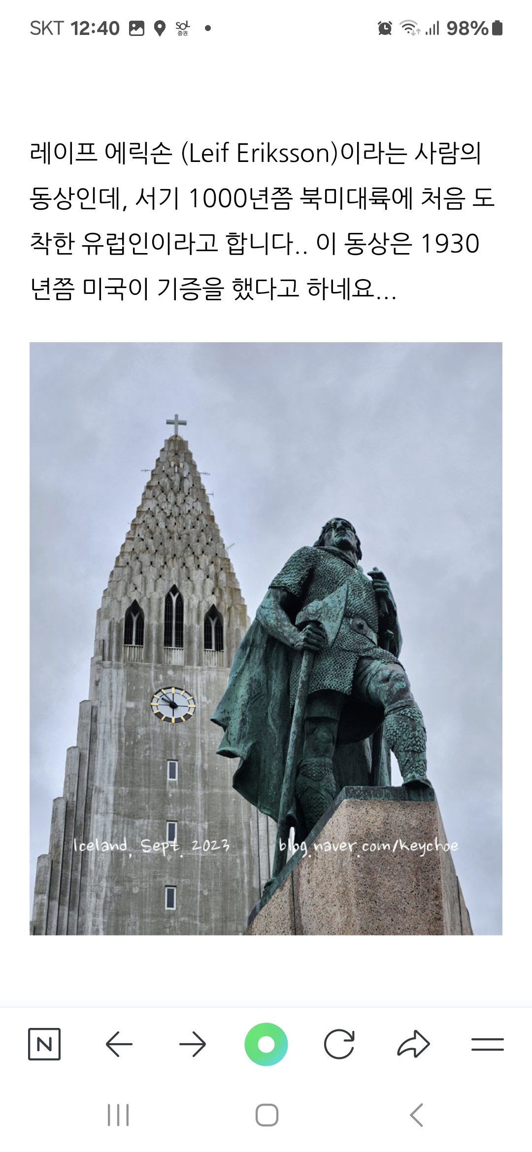 김혜경 언니가 궁금해하던 교회 앞 동상은 레이프 에릭손 - 북미대륙에 처음 도착한 사람 이란다