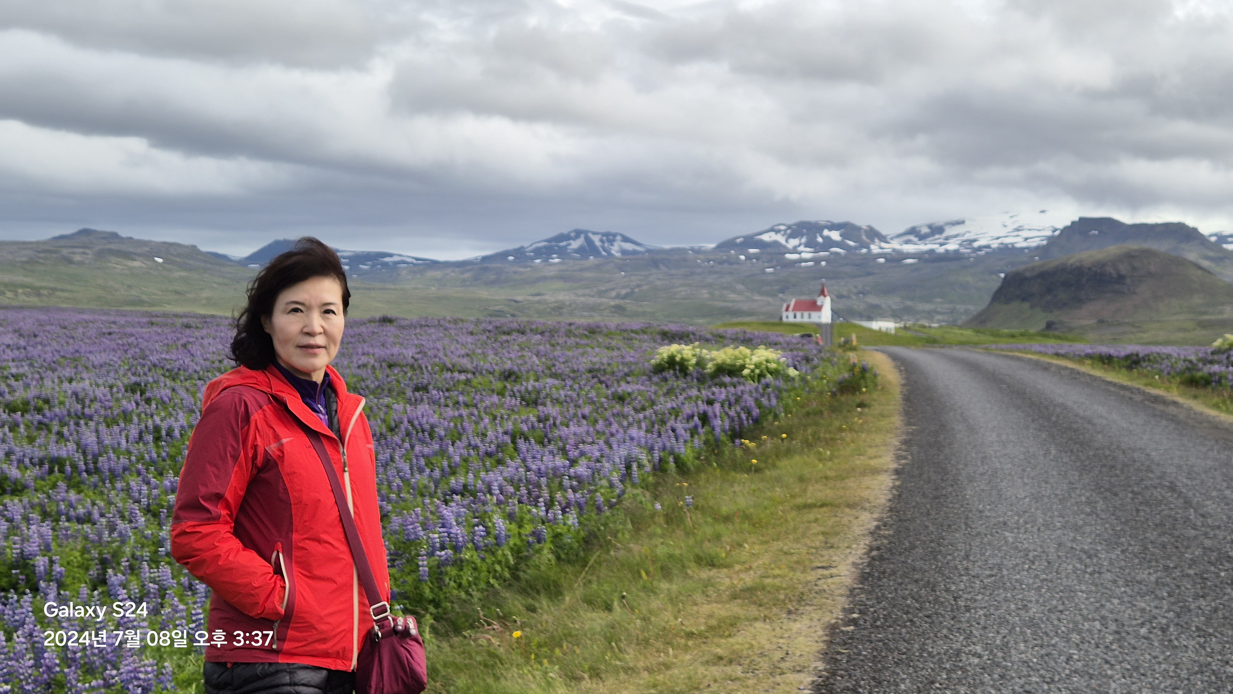 루피너스 와 흰색 교회 인증사진