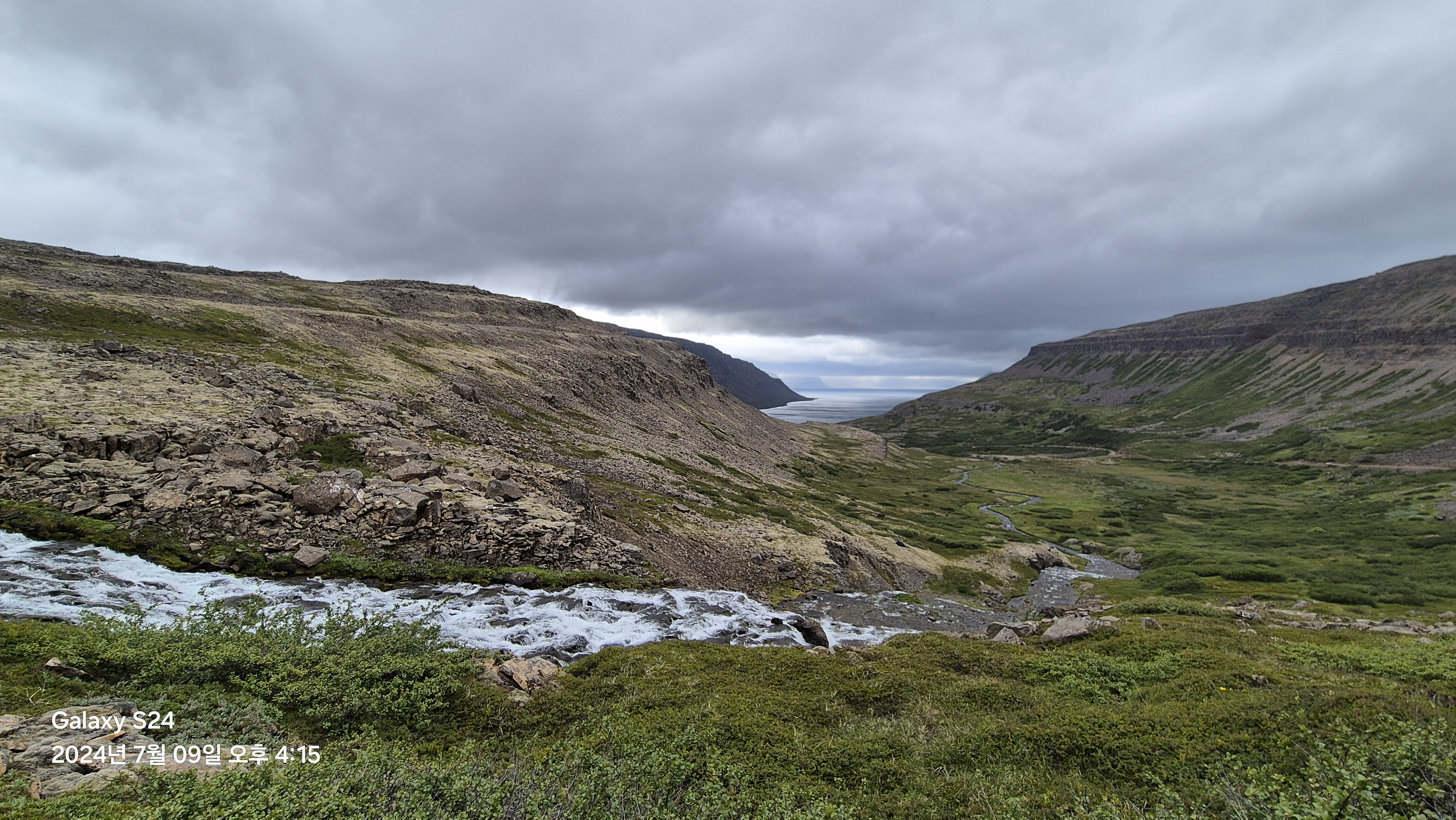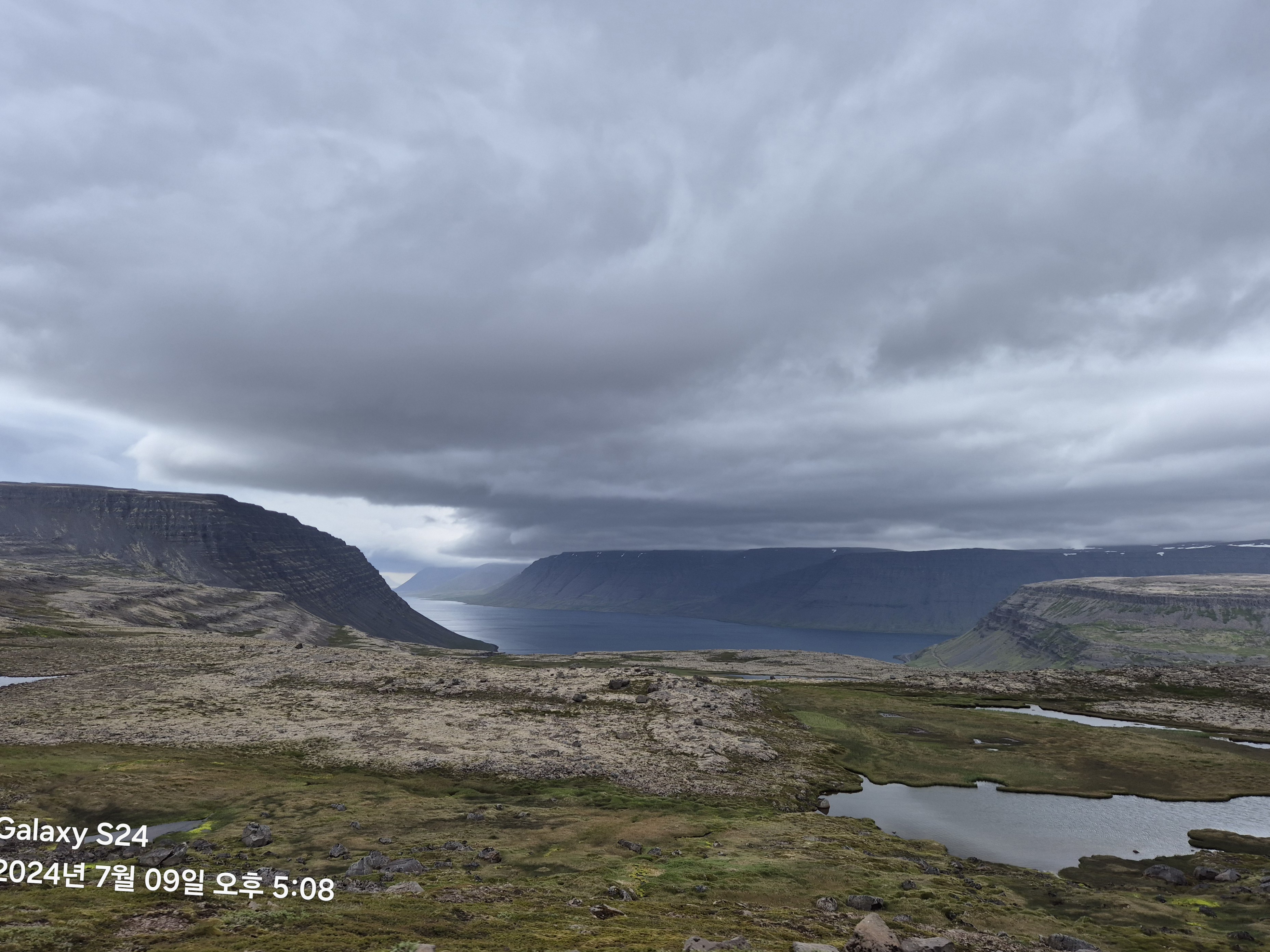 멀리 보이는 피요르드~ Dynjandi 지역에 왔다