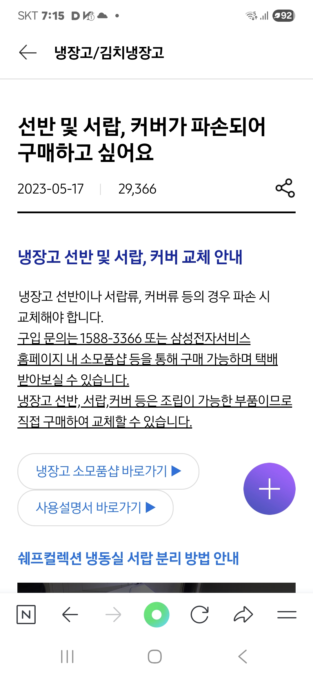 냉장고 야채실 문이 열리지 않는데 일주일 넘게 열어보려고 시도 했지만 계속 열리지 않아서 삼성전자서비스에 문의를 하기로했다