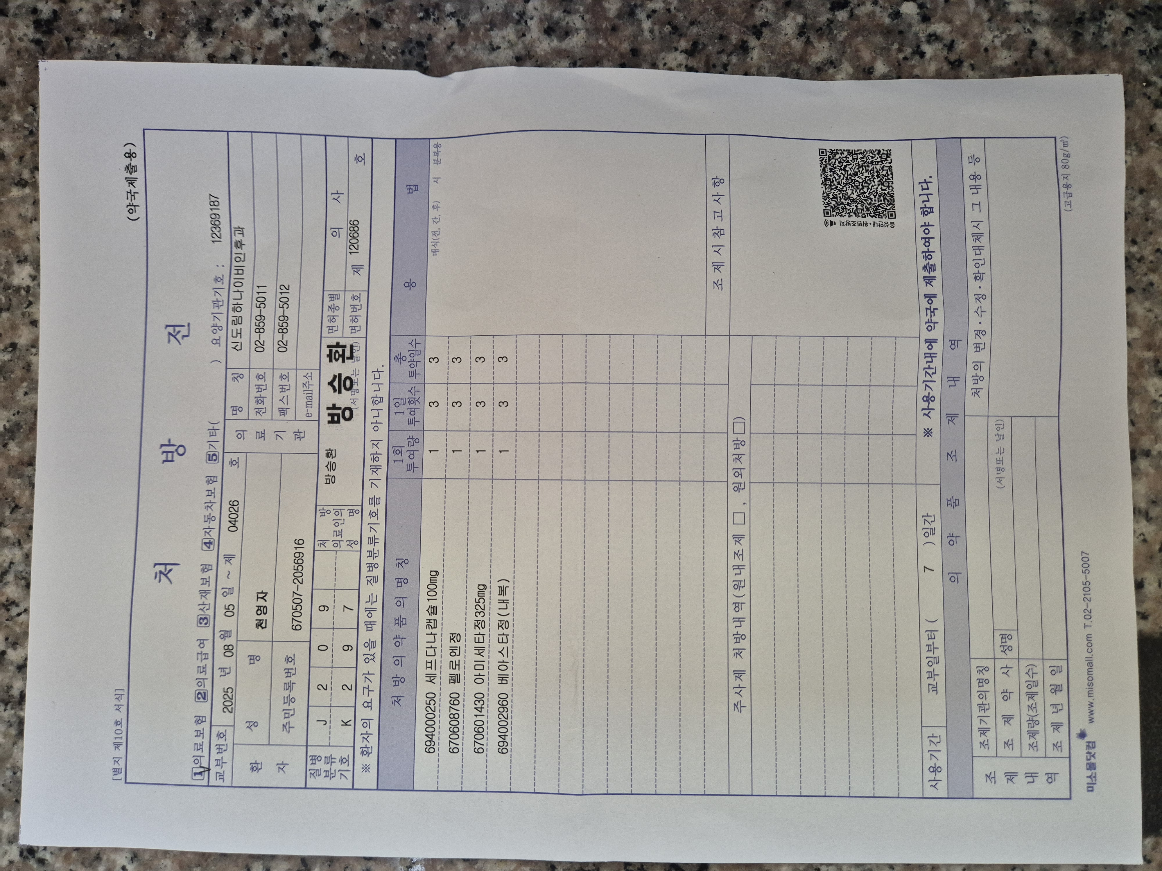 왼쪽 귀가 아파서 하나이빈후과에 가서 약 3일치를 받았다 ㅠ