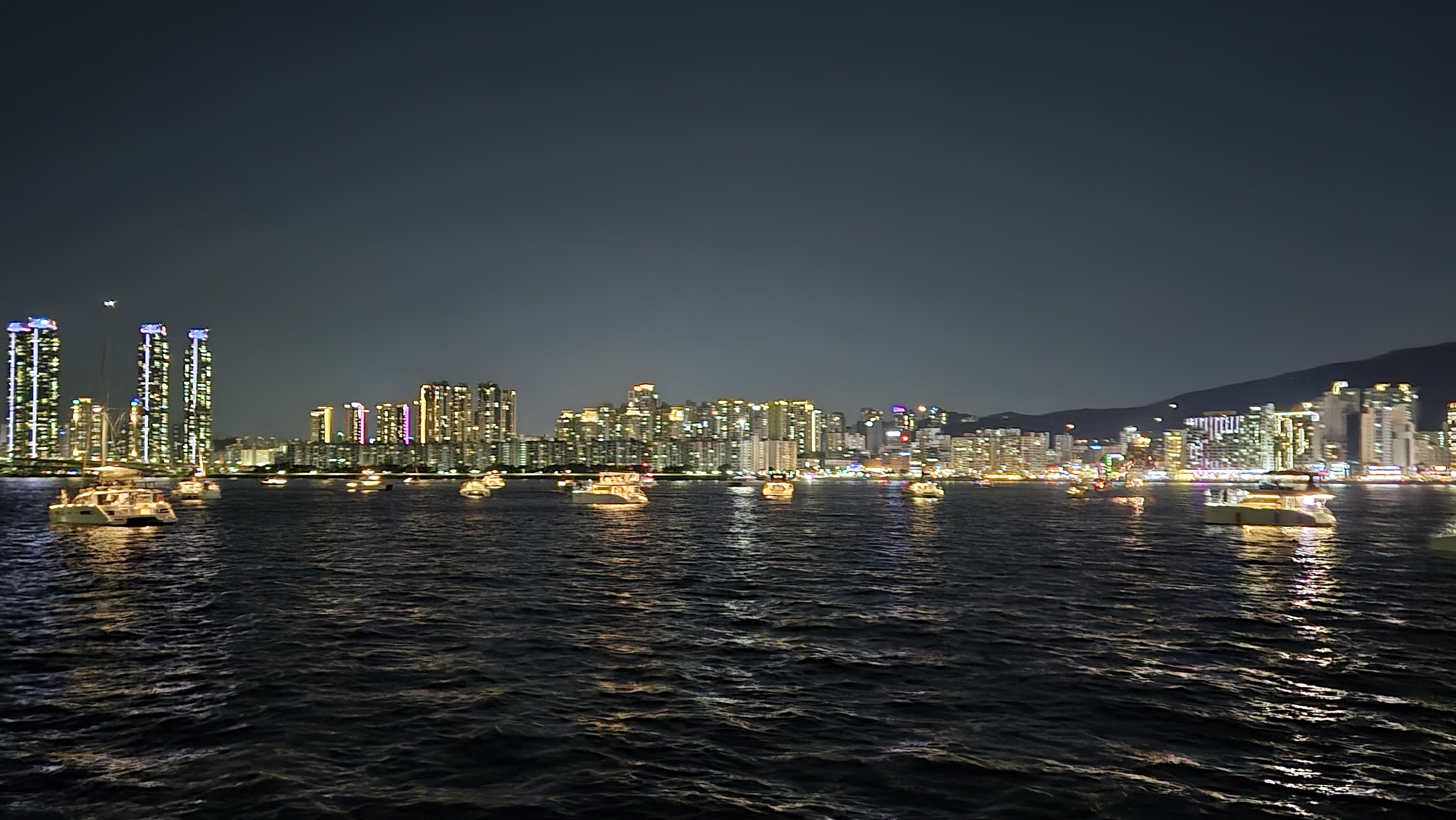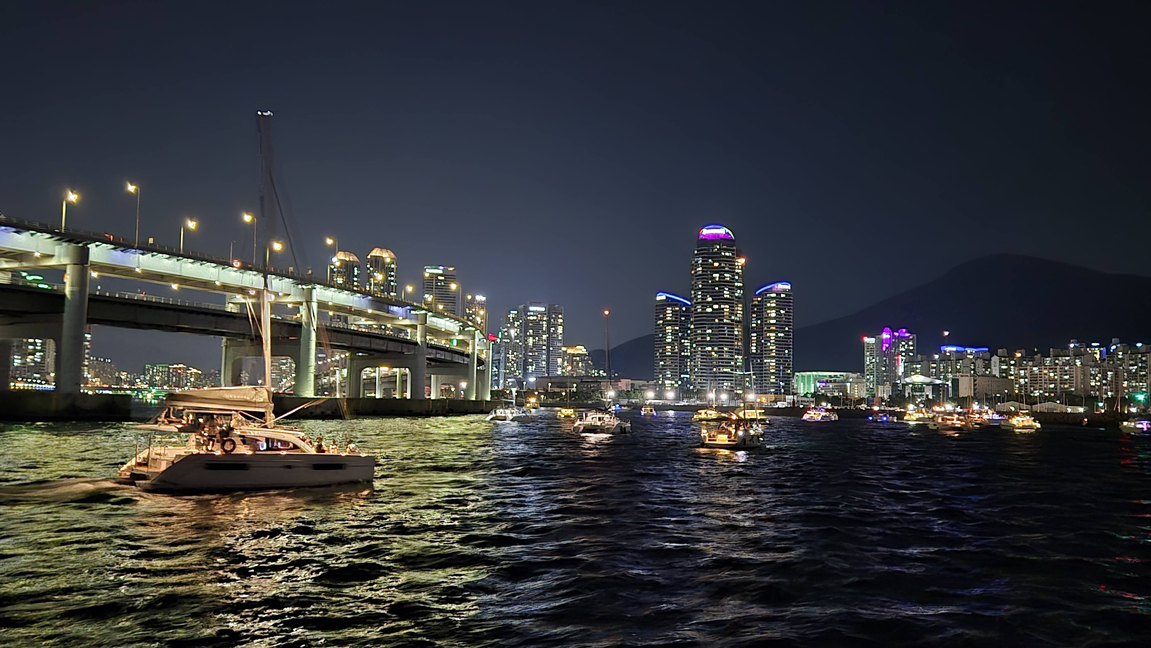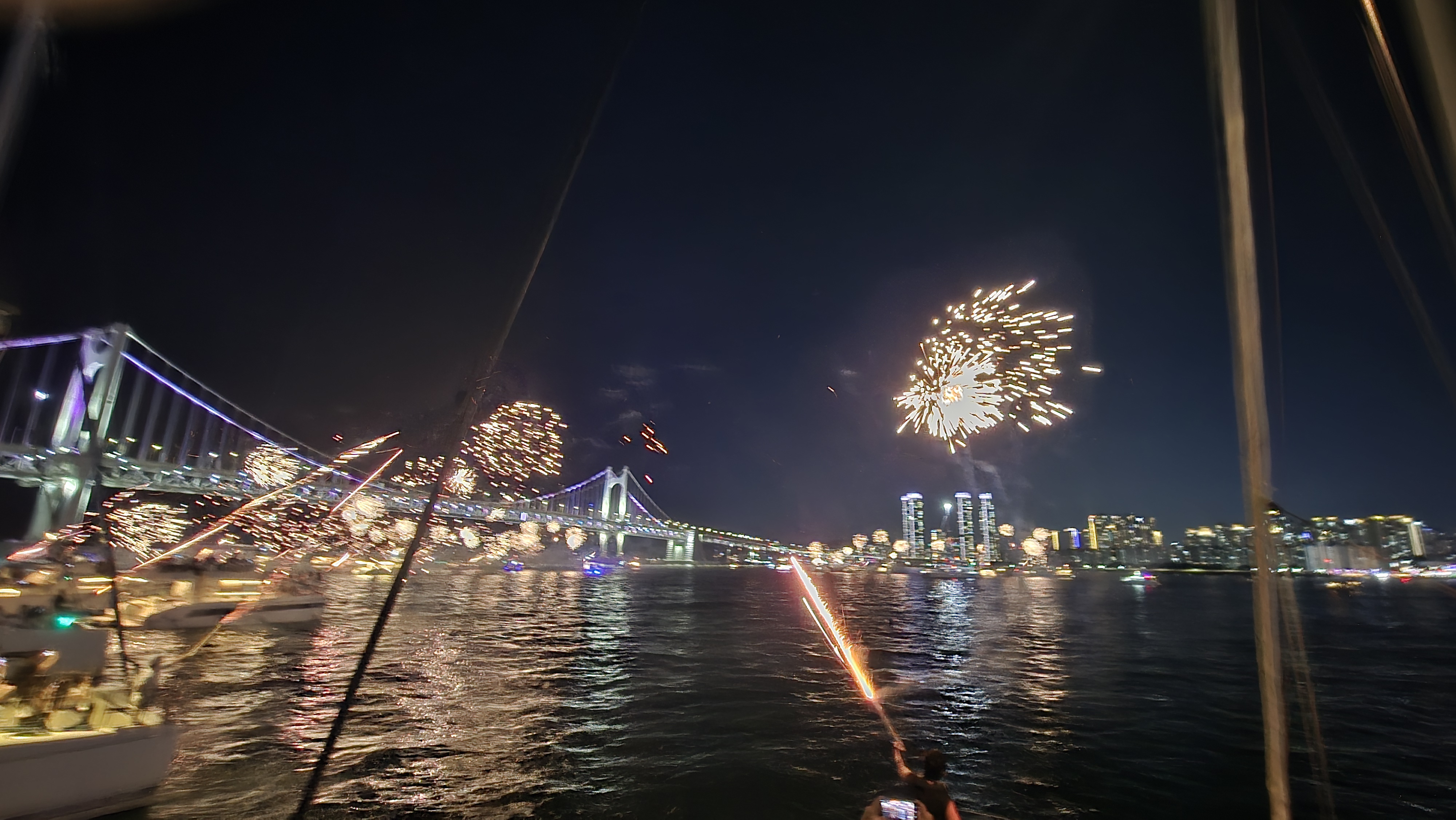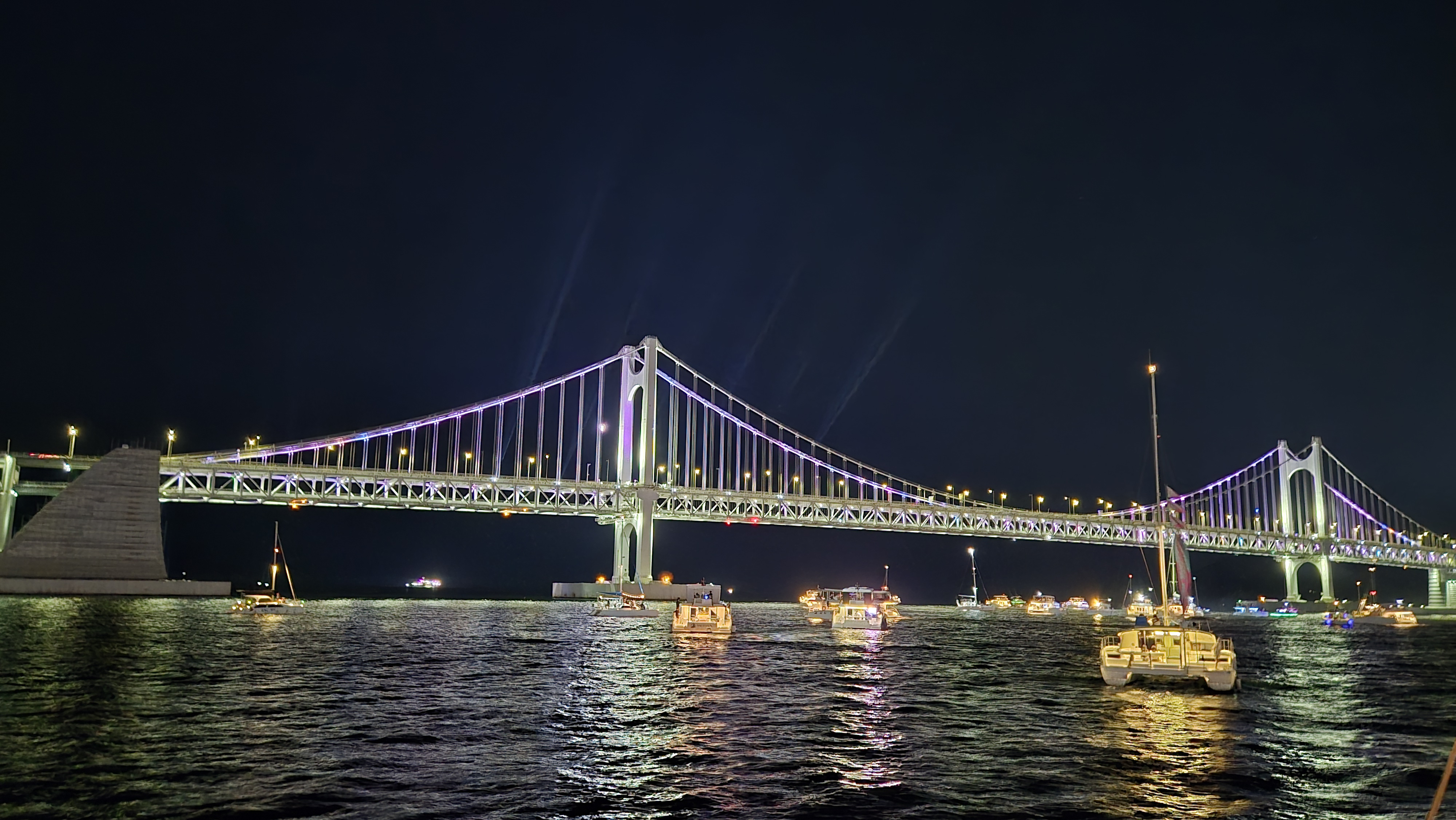 광안대교 아래서 요트들이 일제히 폭죽을 쏘아올린다 장관이다 ㅎ