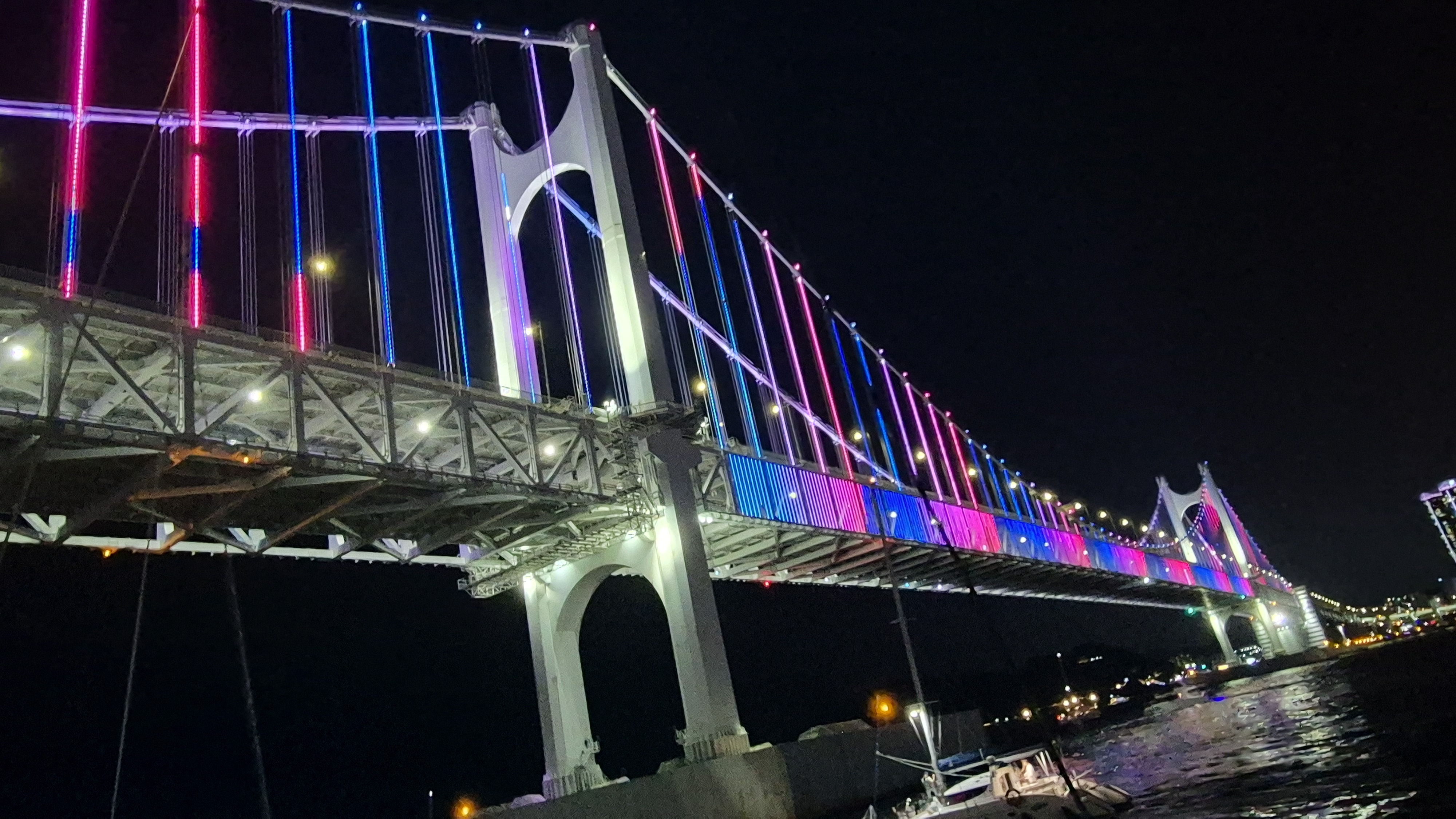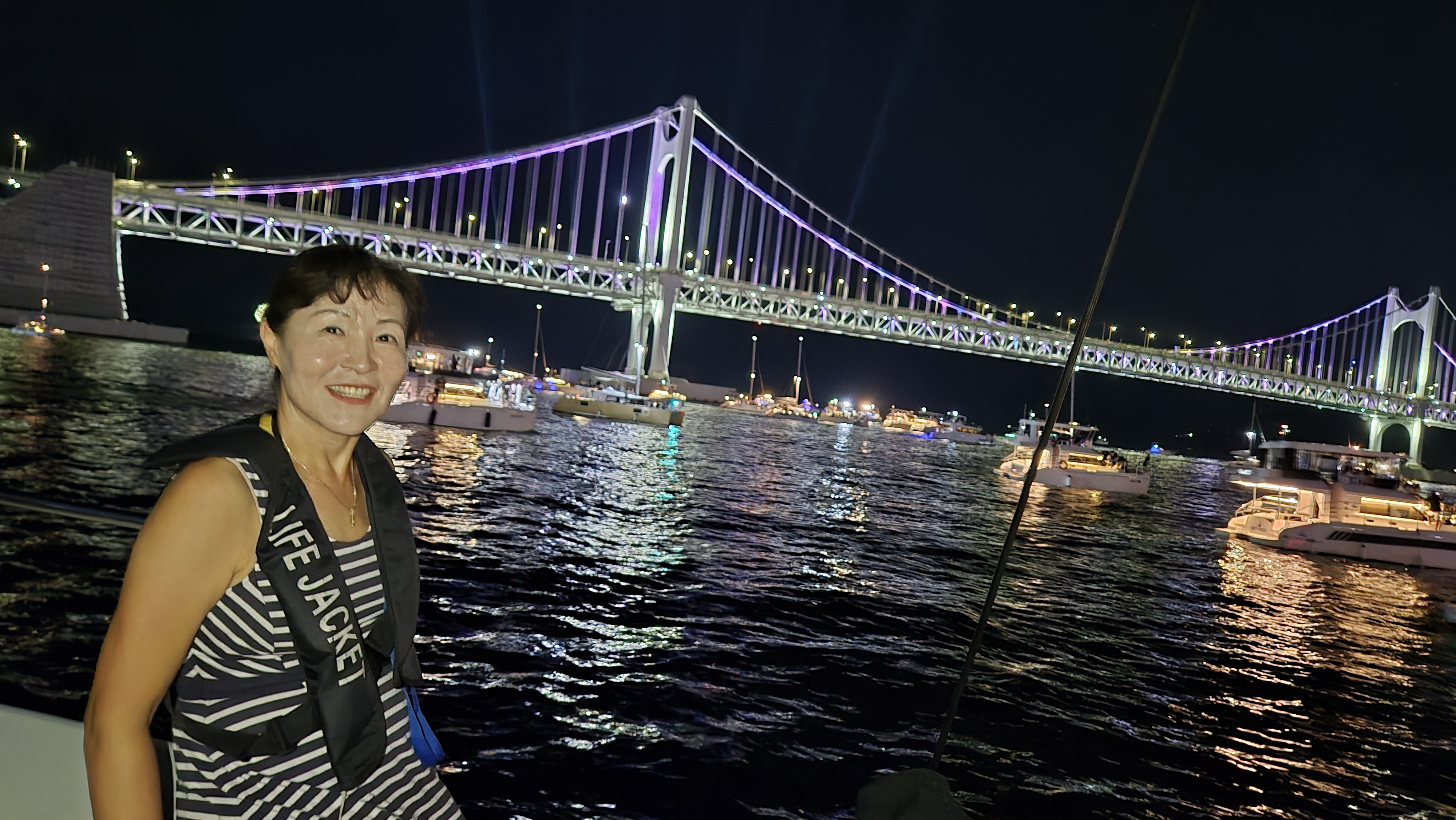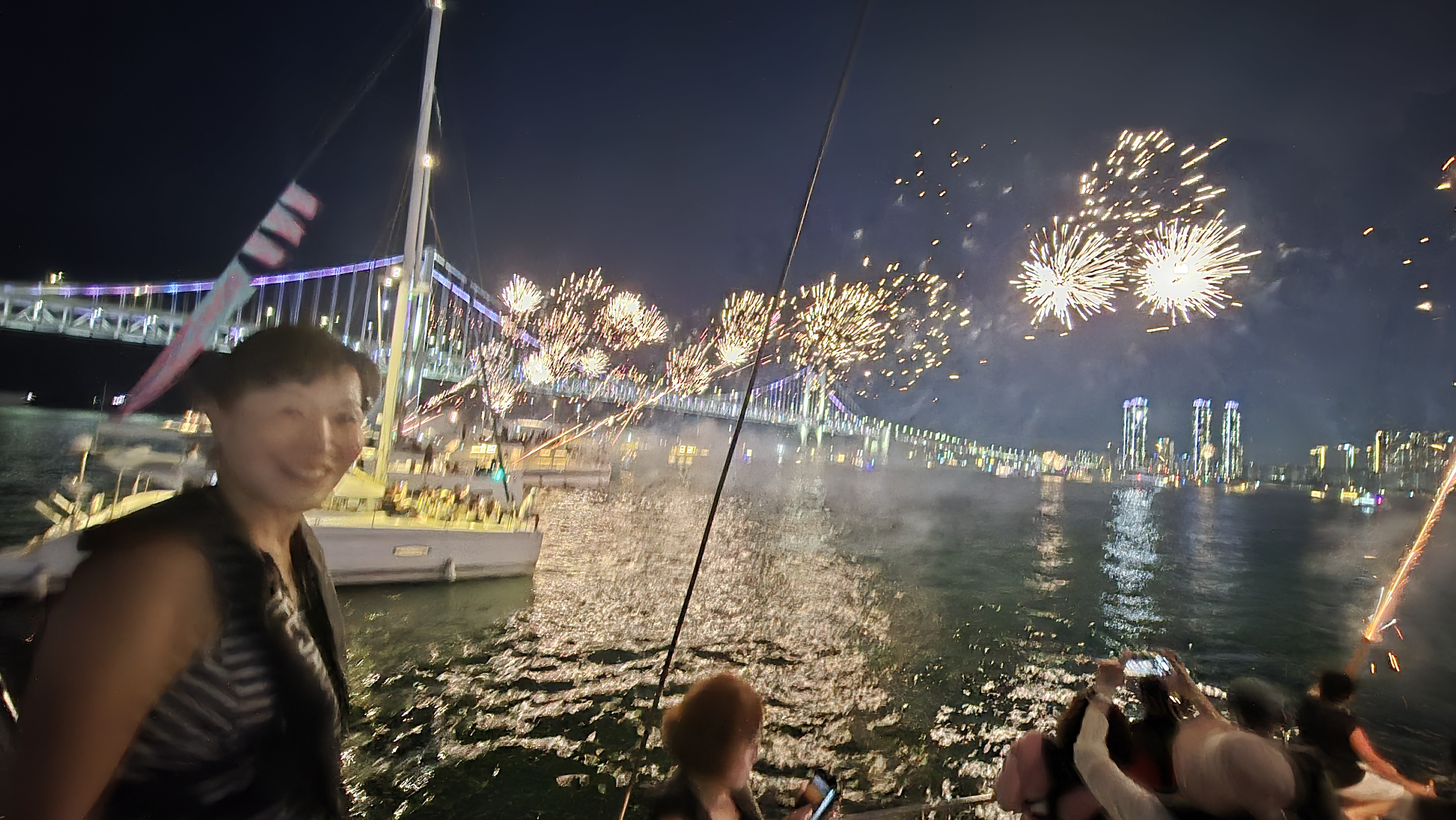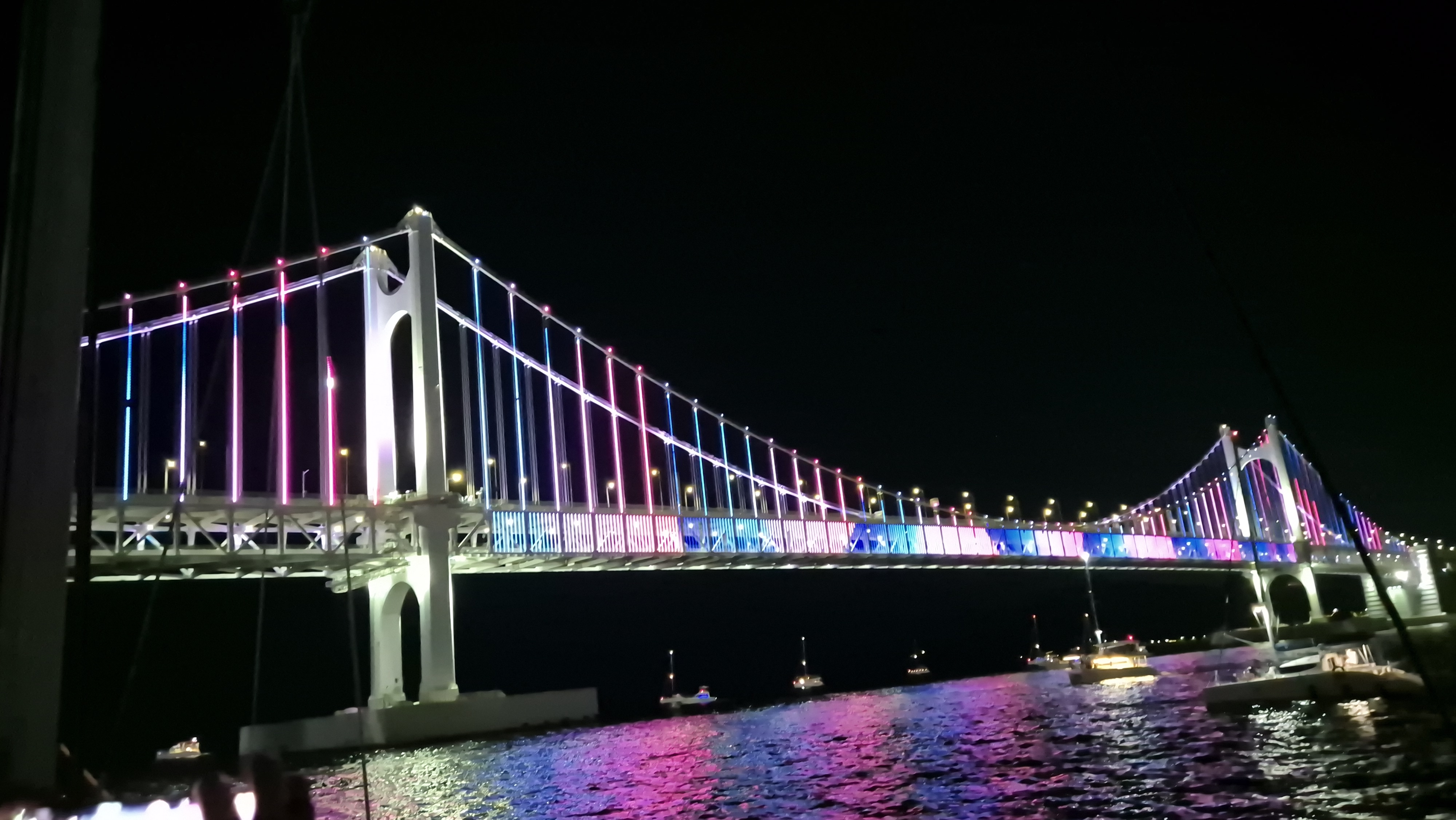 광안대교 아래서 요트들이 일제히 폭죽을 쏘아올린다 장관이다 ㅎ