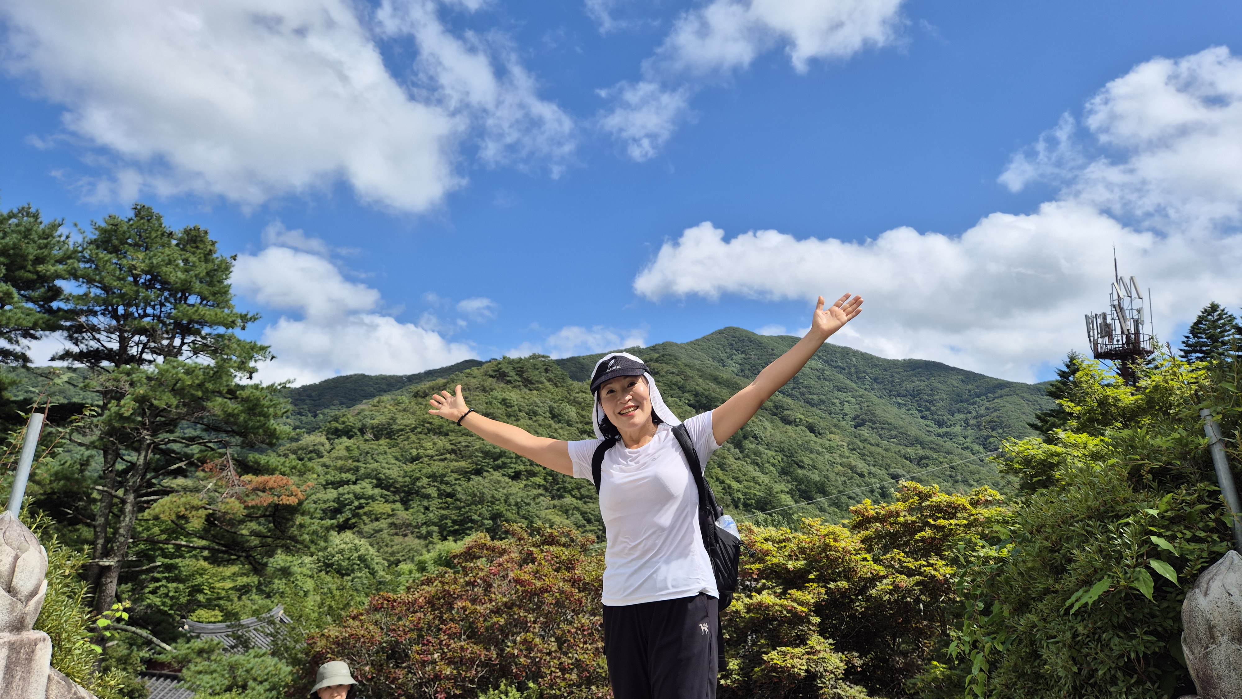 점심 먹고 3명만 백련사까지 가기로 하고 다른분들은 내려가서 상가앞에서 물놀이 하기로 했다