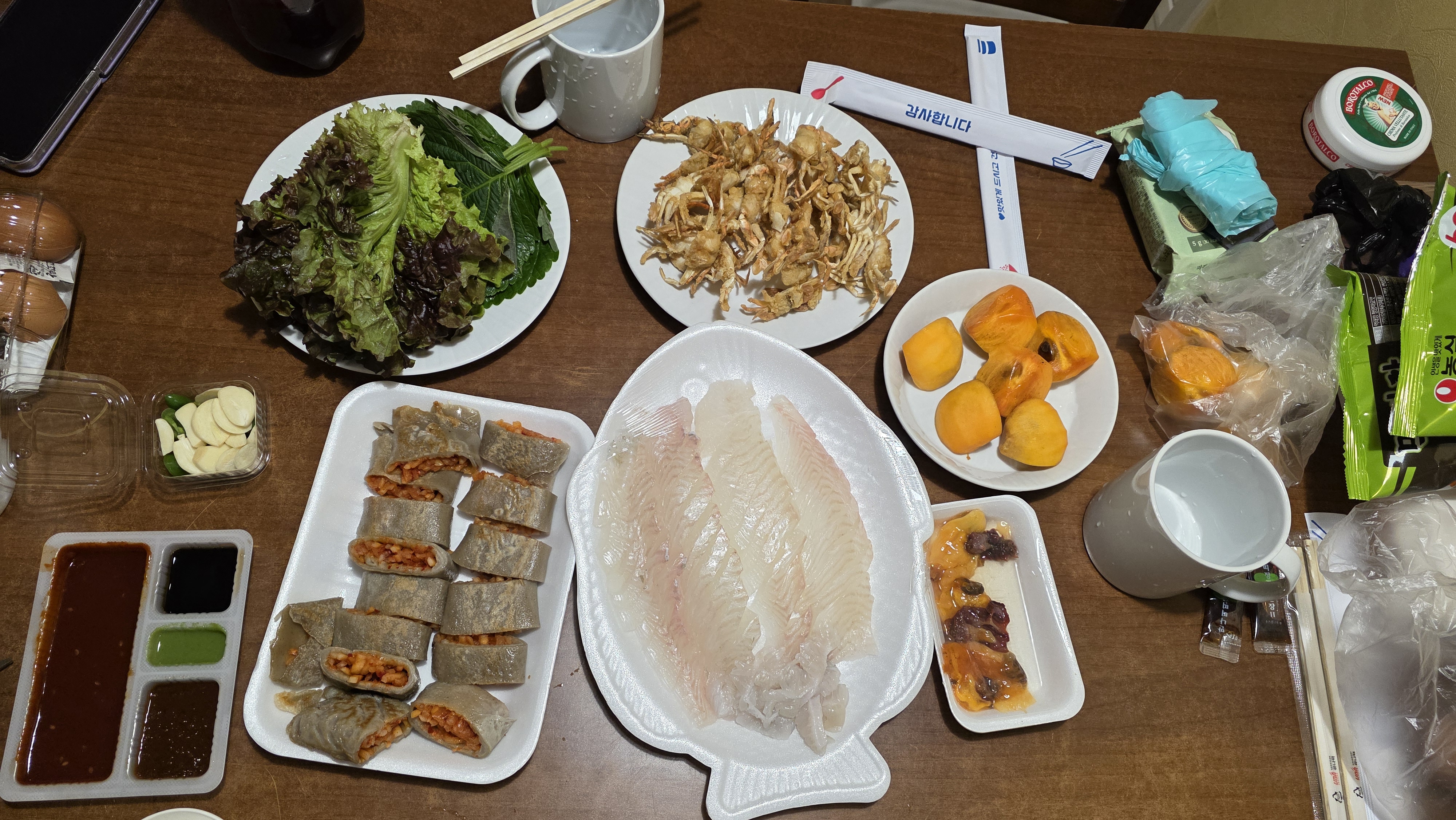 속초 관광 시장에서 사온 먹거리로 한상 차렸다 ㅎ
