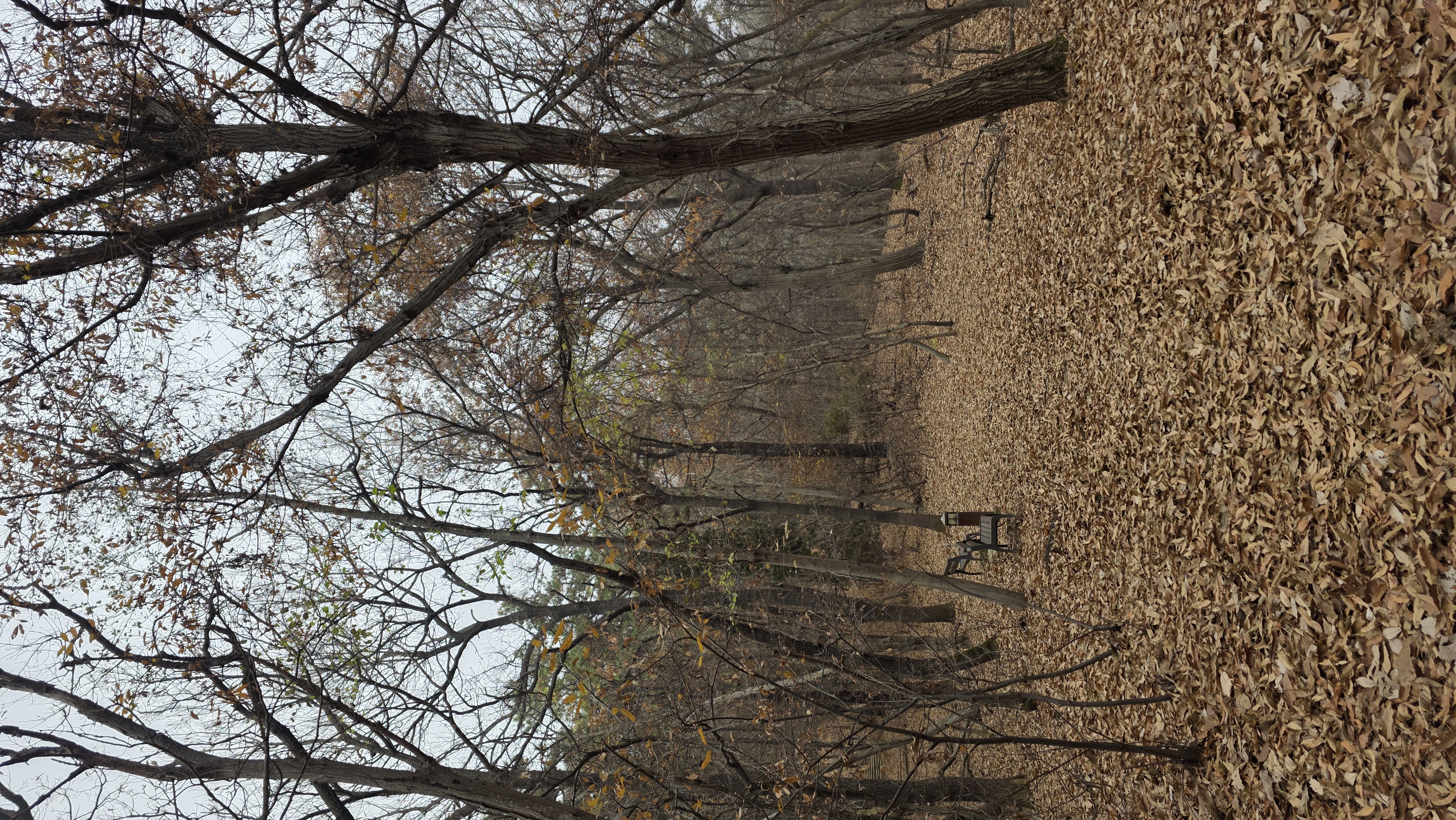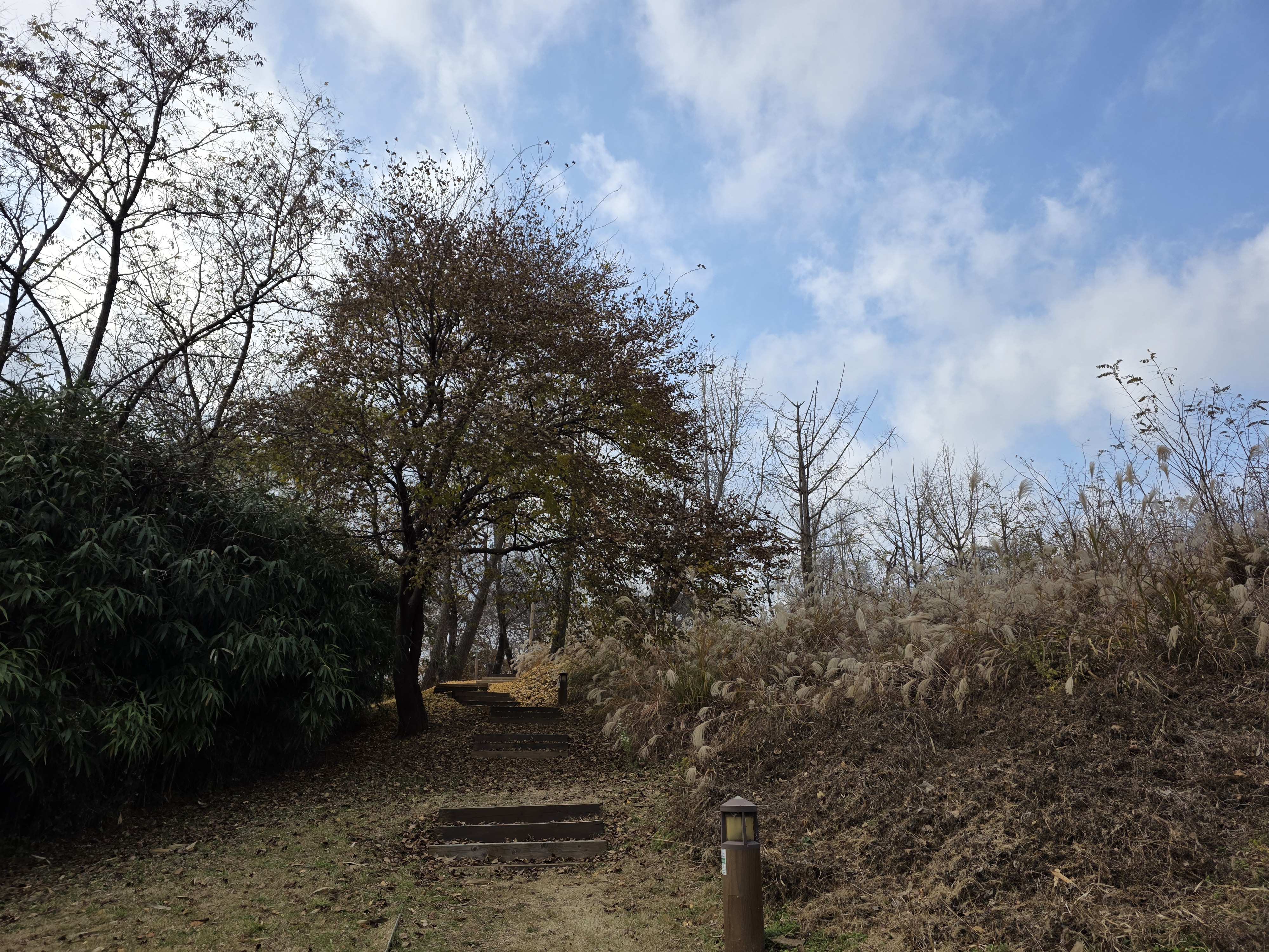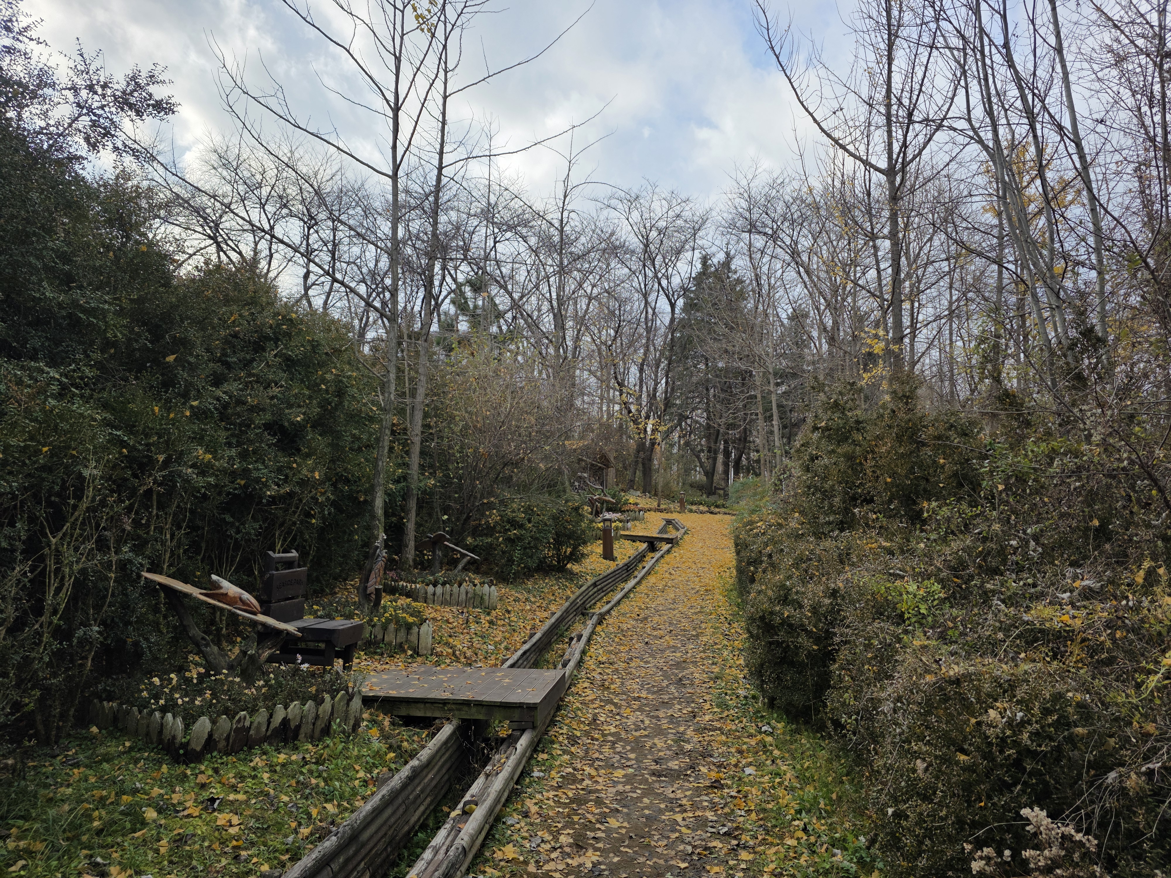 나뭇잎들이 수북히 쌓여 길을 가리고 있다