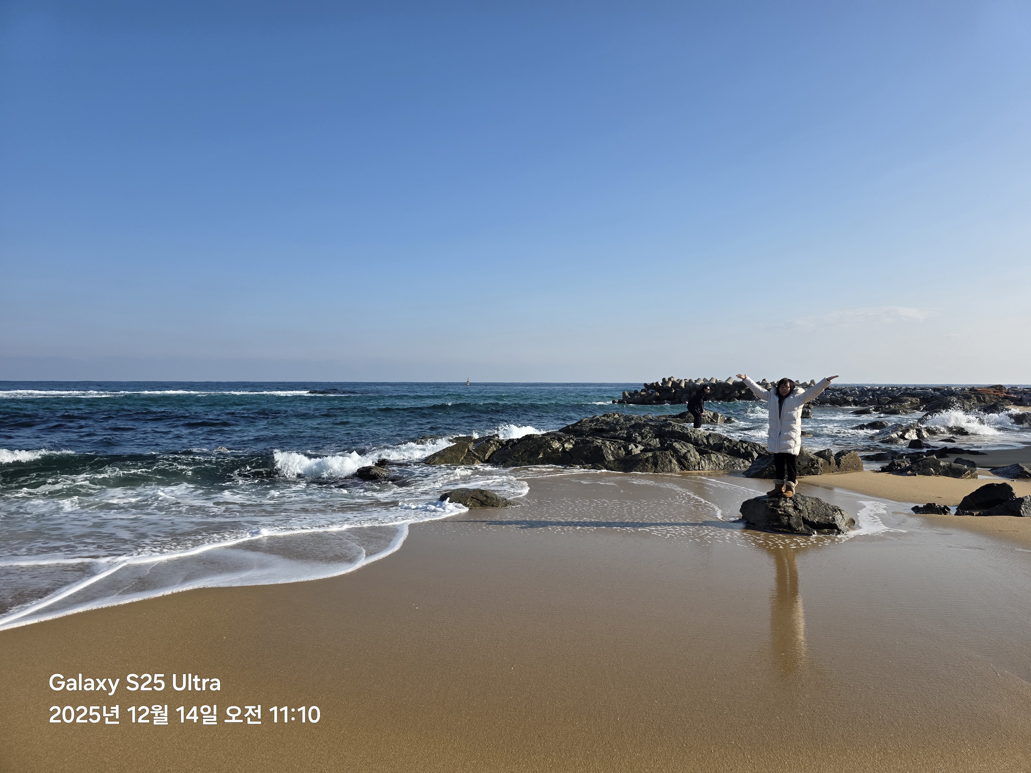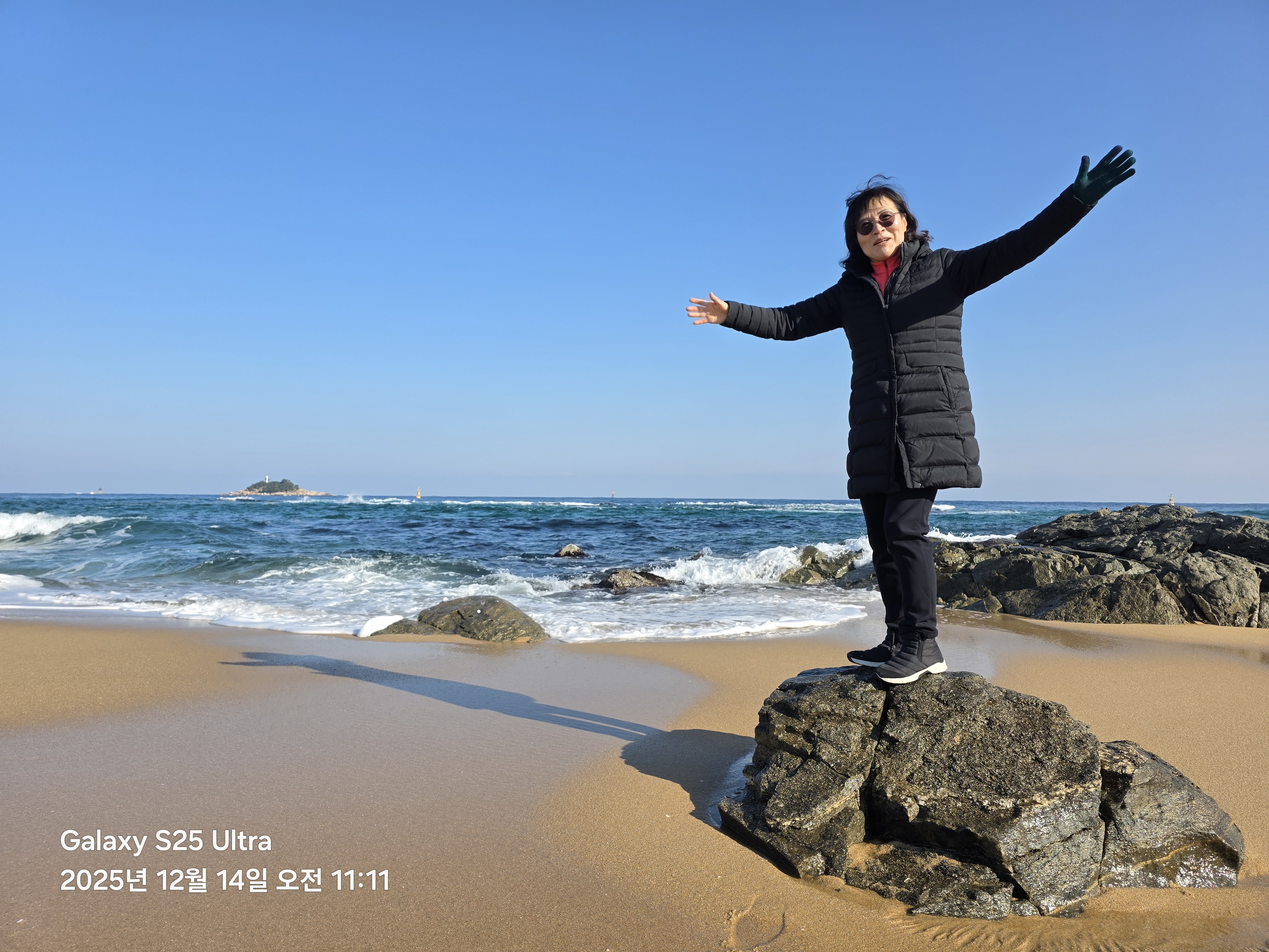 별님 언니 바위에 올라갔을때먀 파도가 안쳤다