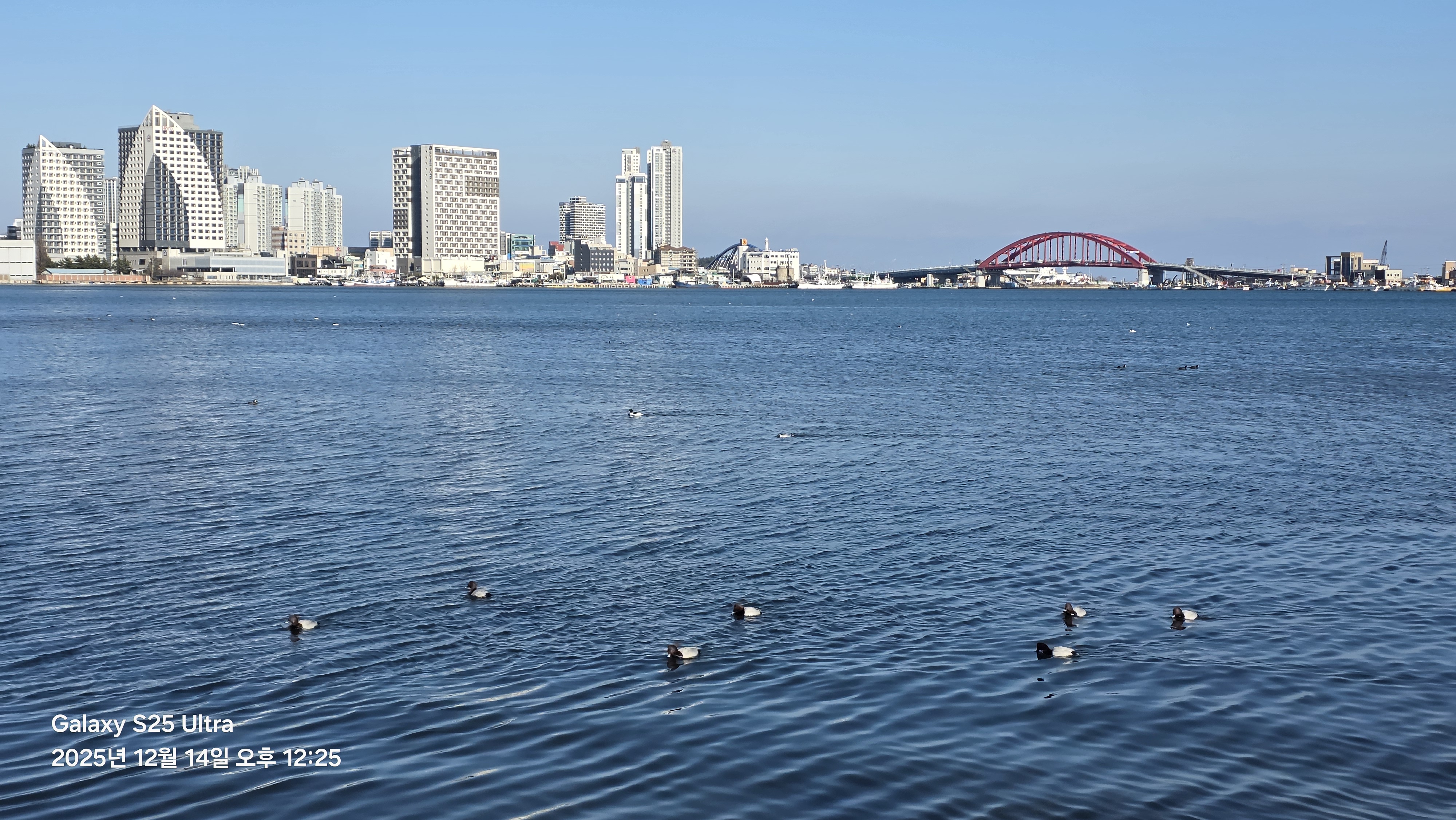 청초호에 오리들이 떠 있다 원앙?