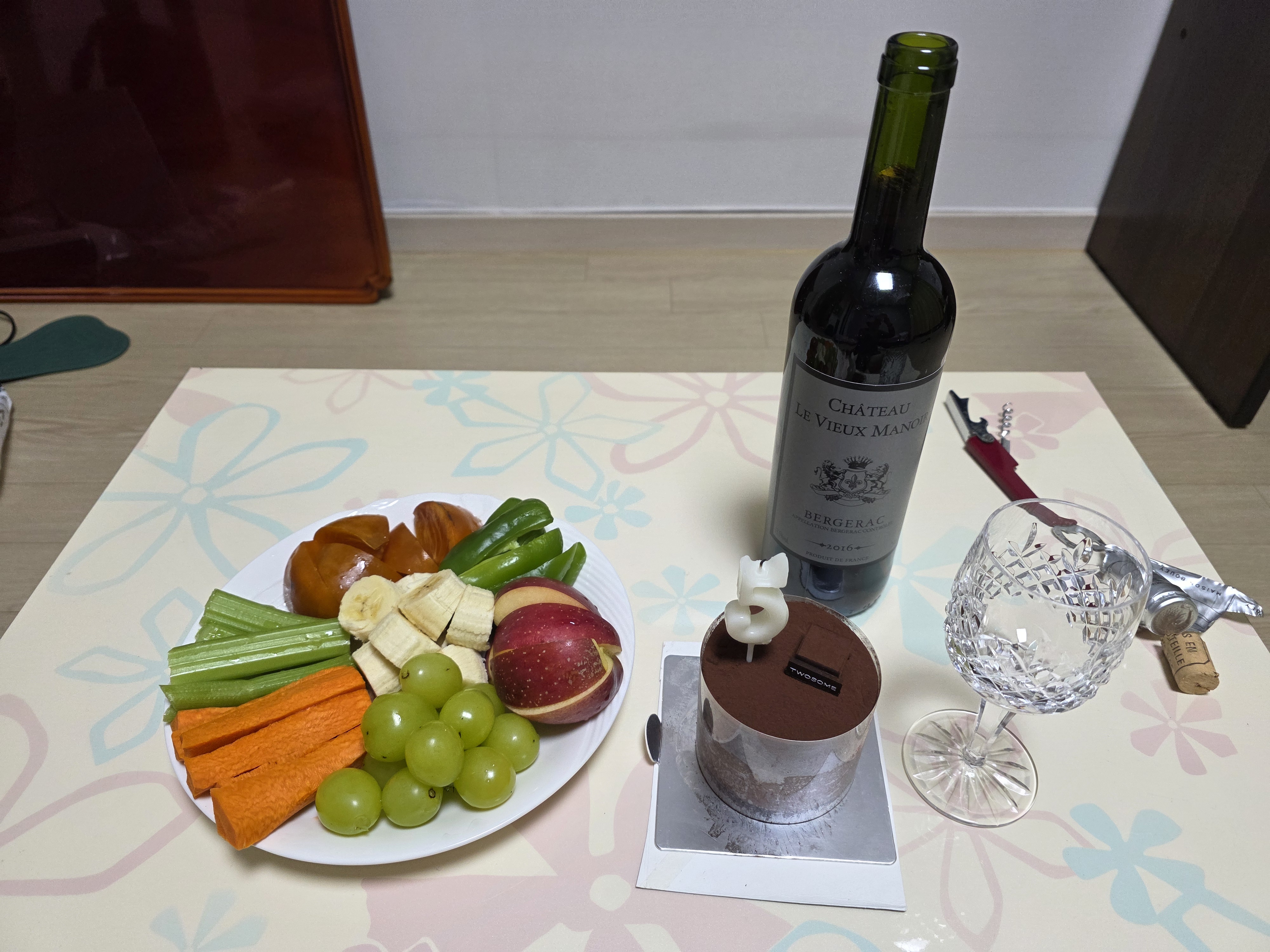 혼자라도 파티 분위기 내려고 케잌과 와인 준비 ~