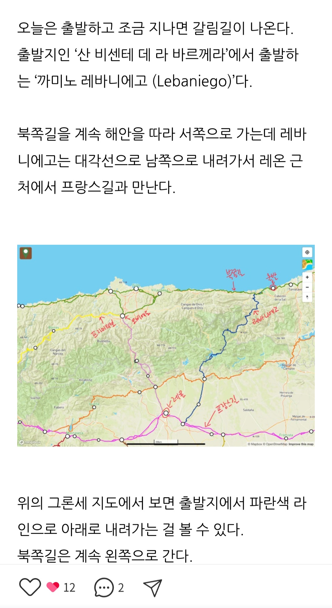 산티아고 순례길 북쪽길 에서 프랑스길 로 가는길 이란다 ㅎ