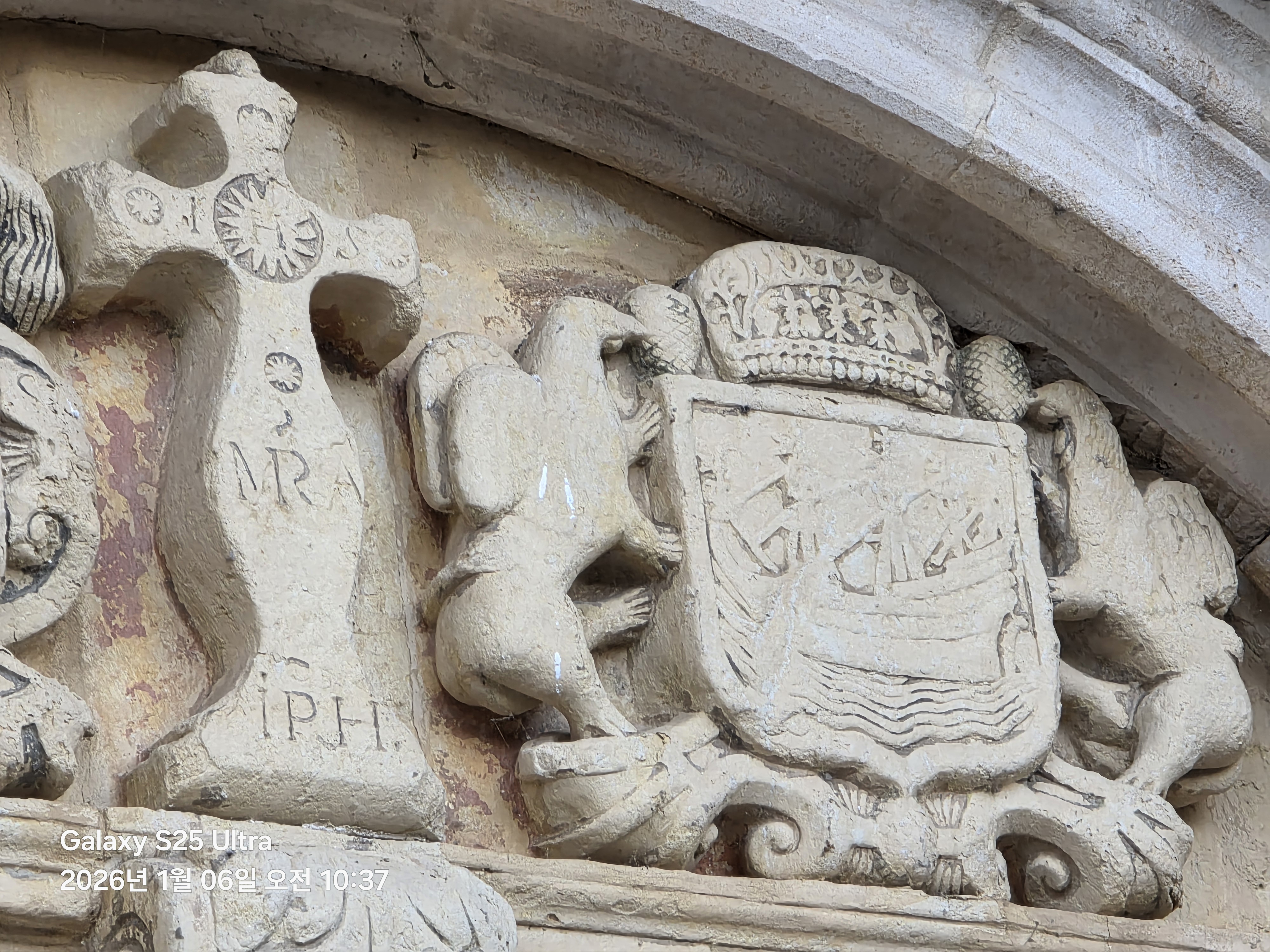 Iglesias Nuestra Sra. de Los Angeles 성모마리아 천사 교회의 문장 부조