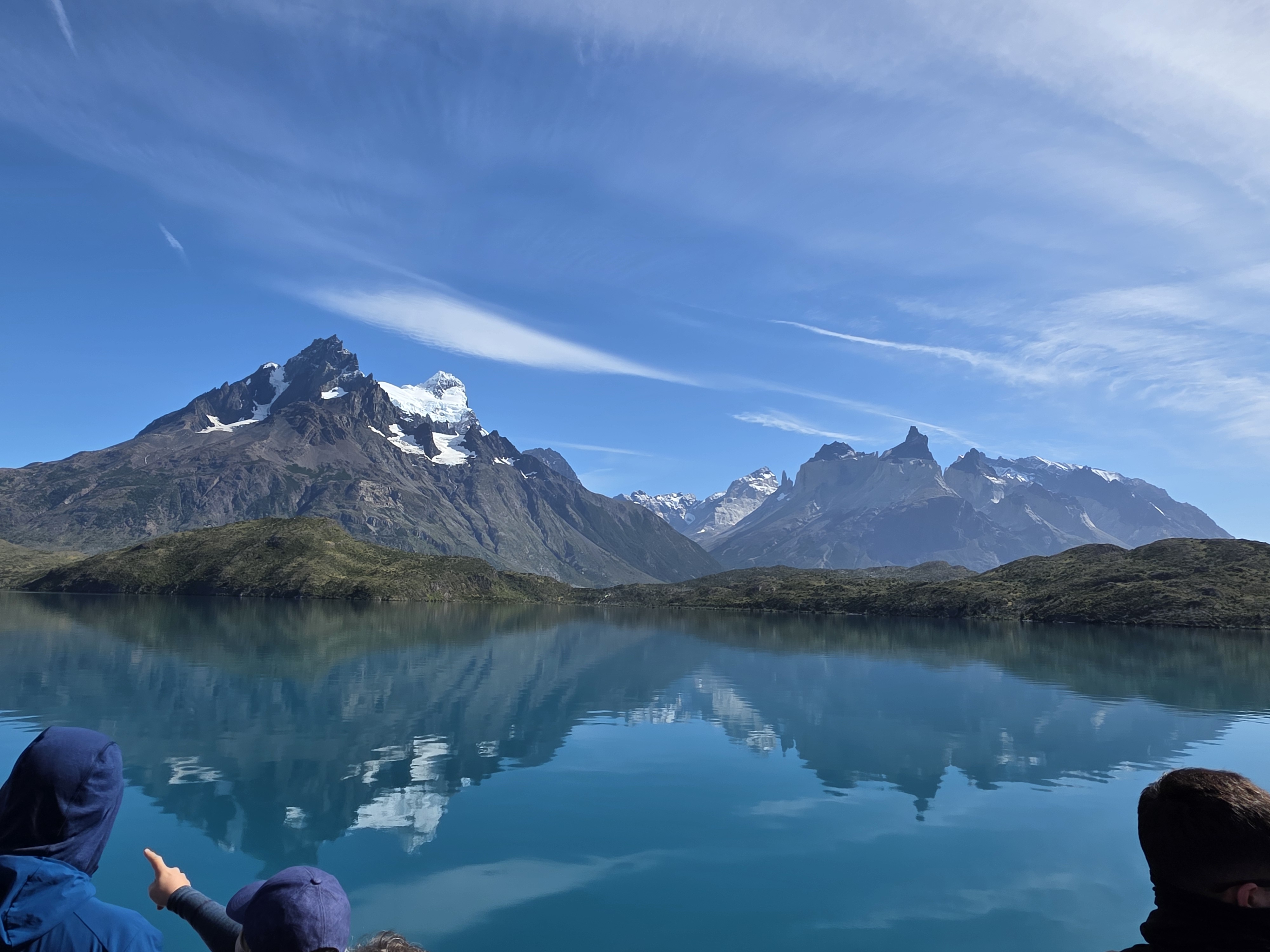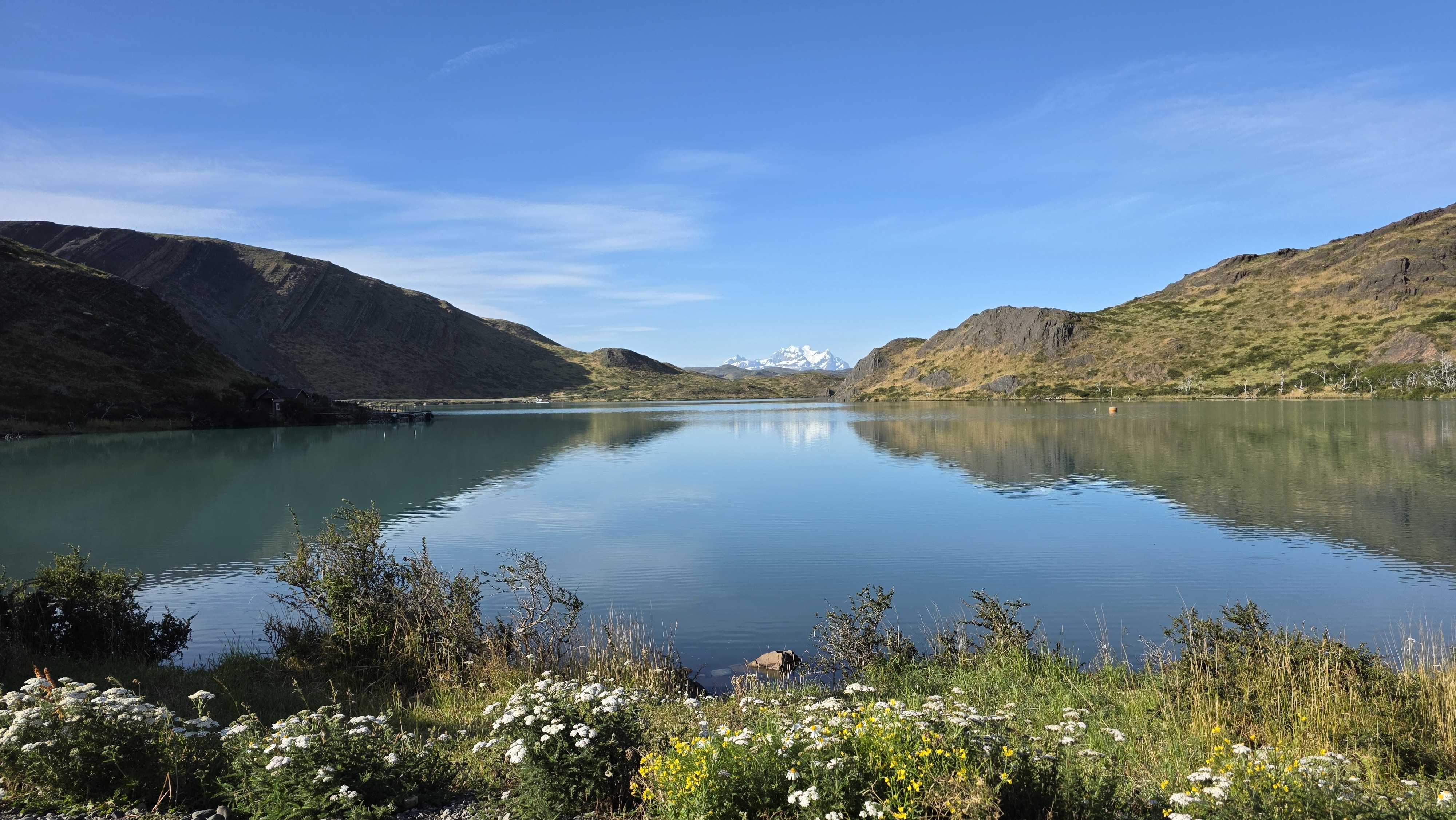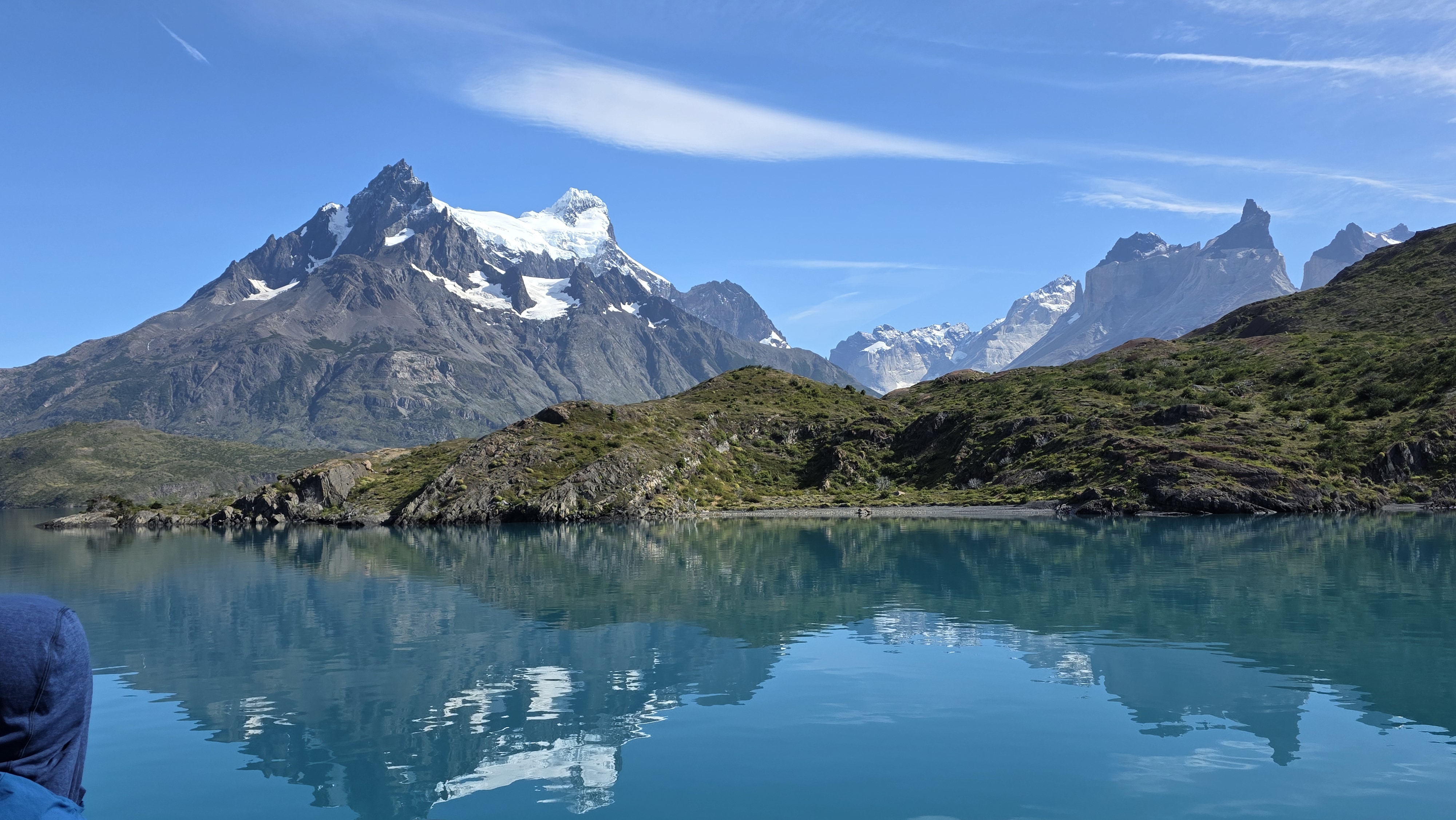 산 반영 사진도 찍고 있는데 파이네 그란데가 보이길래 쌓아놓고 올라간 내 배낭 무너져서 또 중요한 물병 없어질까봐 서둘러서 내려왔다 ㅠ