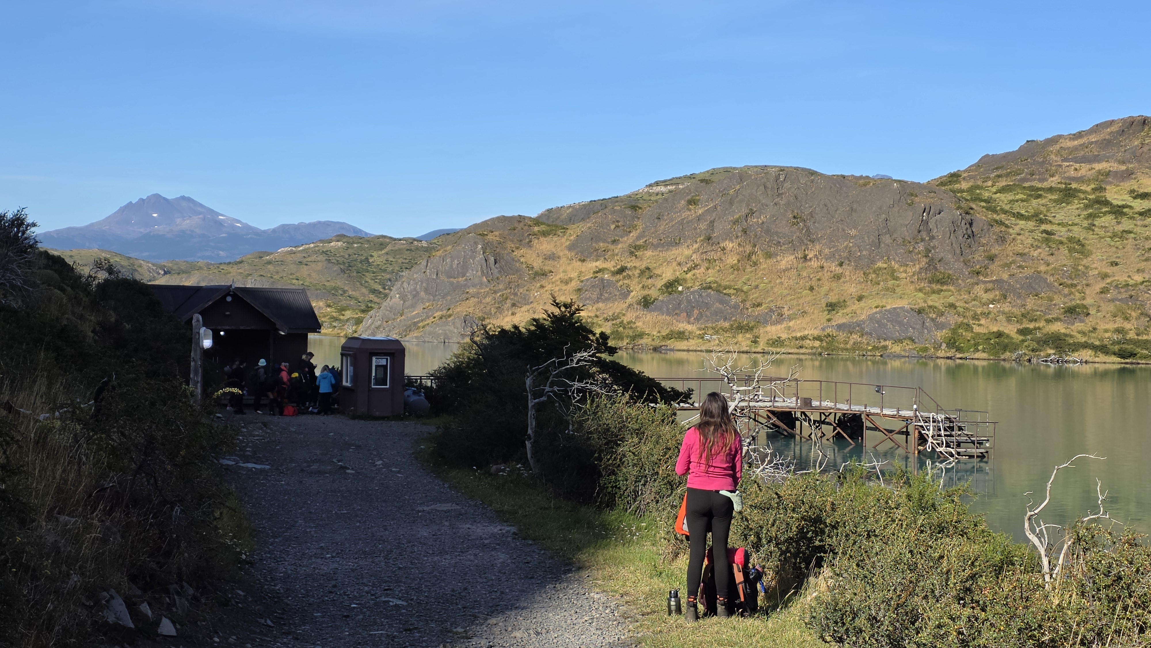 배에서 내린 사람들이 파이네 그란데 로 개미떼 처럼 몰려가고 있다 ㅎ 파이네 그란데 에는 총 300명 정도가 숙박할 수 있단다