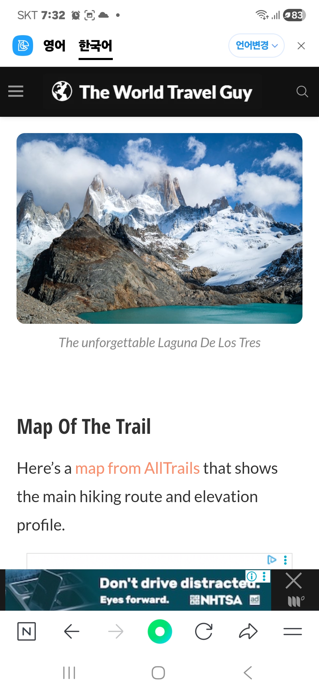 젊은이들은 아르헨티나 엘 찰텐 El Chalten 에 가서 피츠로이 Laguna de Los Tres 에 갈거란다