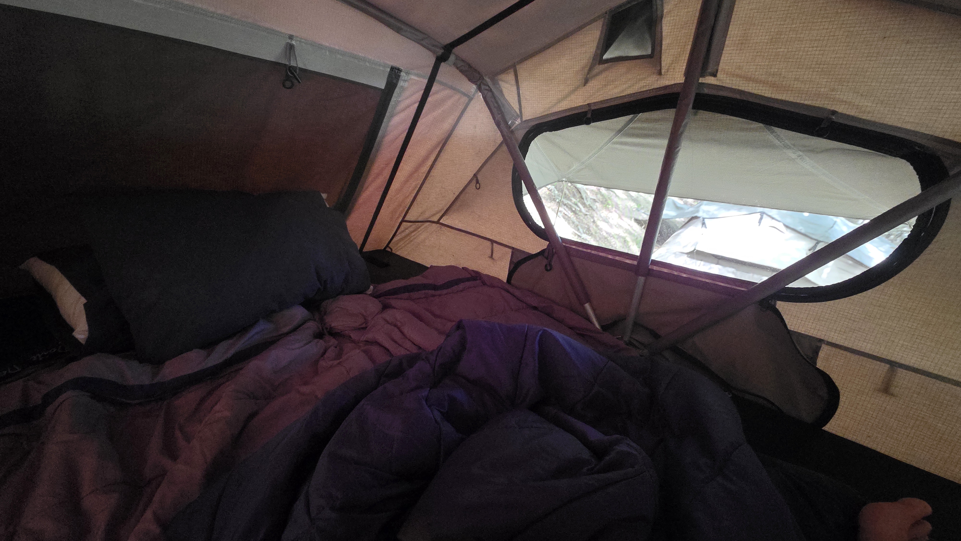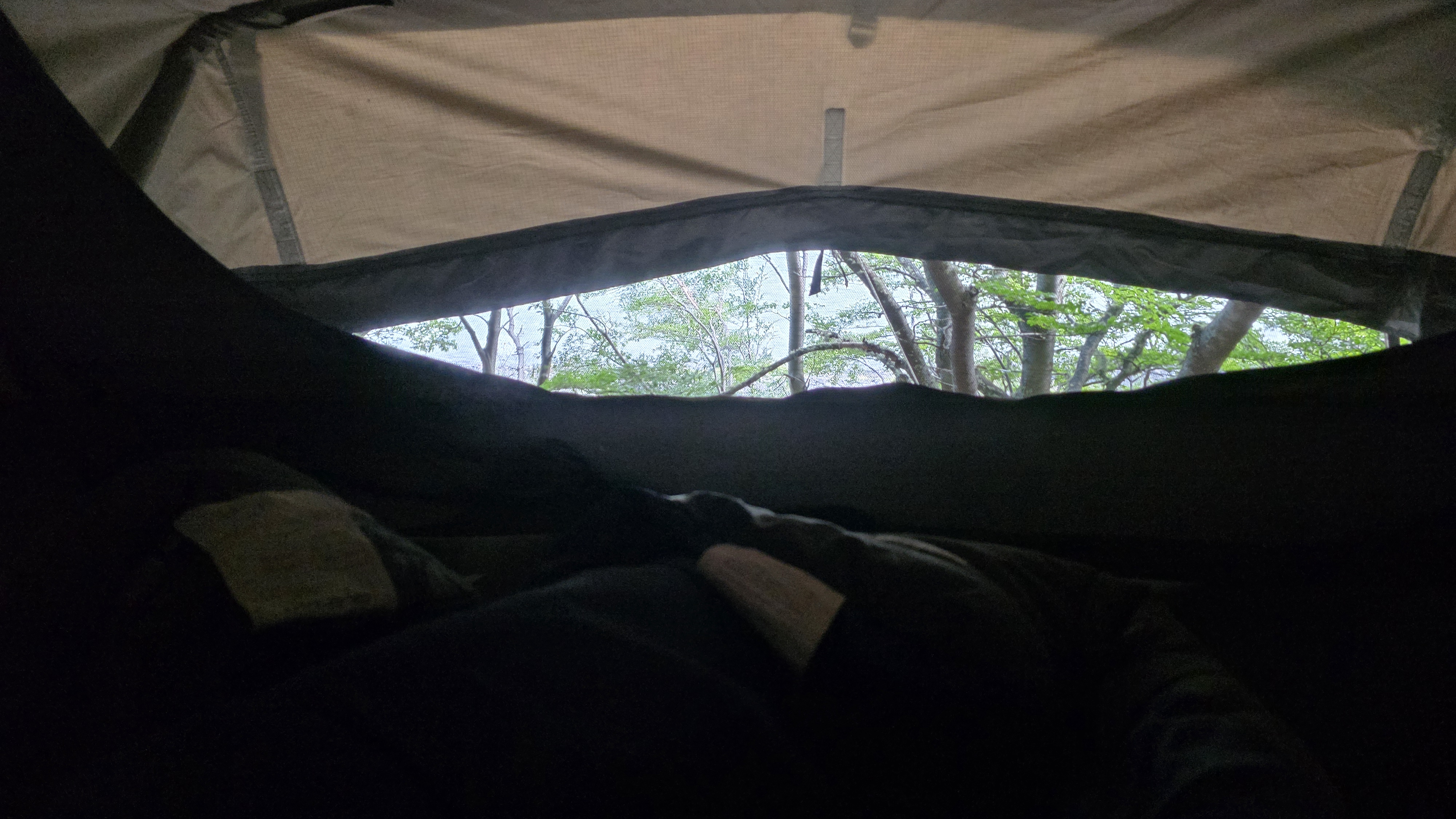 어제부터 침낭 두개를 깔고 덮고 다 사용하고 있는데 오늘은 약간 추워서 바람이 들어와 침낭 안에서 잘까 고민했다 ㅎ