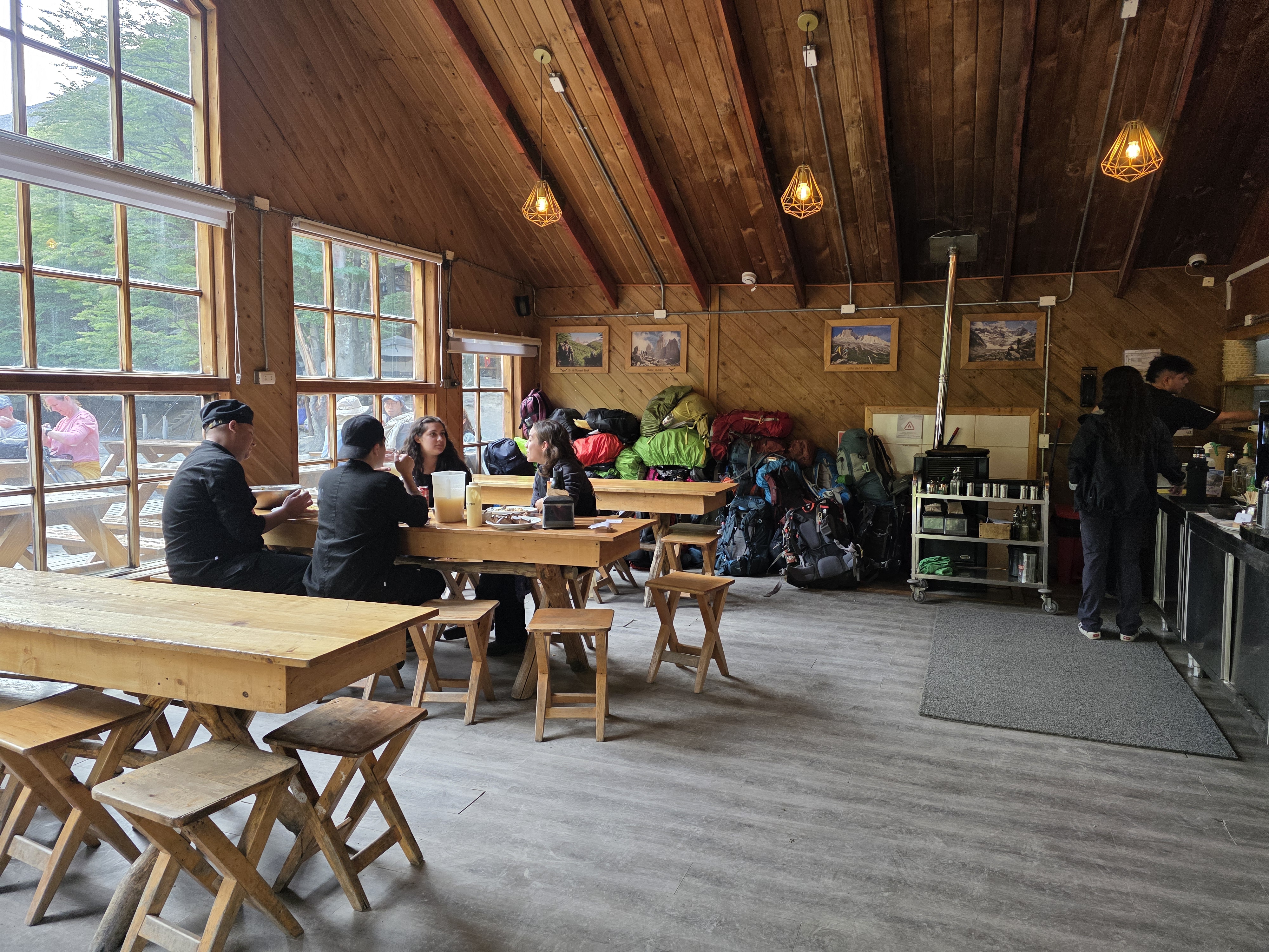 식당안에 배낭을 쌓아놓고 Base Torres 에 간거 같다