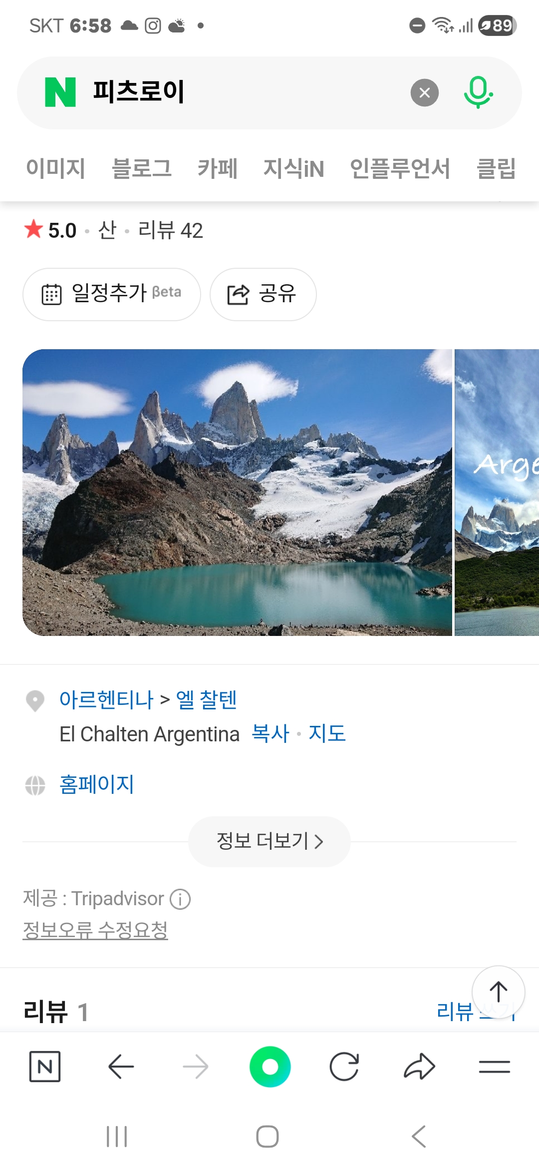 나도 아르헨티나 엘 찰텐 El Chalten 에 갔었는데 피츠로이 Laguna de Los Tres 에 갔었는지는 잘 생각이 안난다 ㅠ 무슨 호수 트레킹 은 했었는데 ~