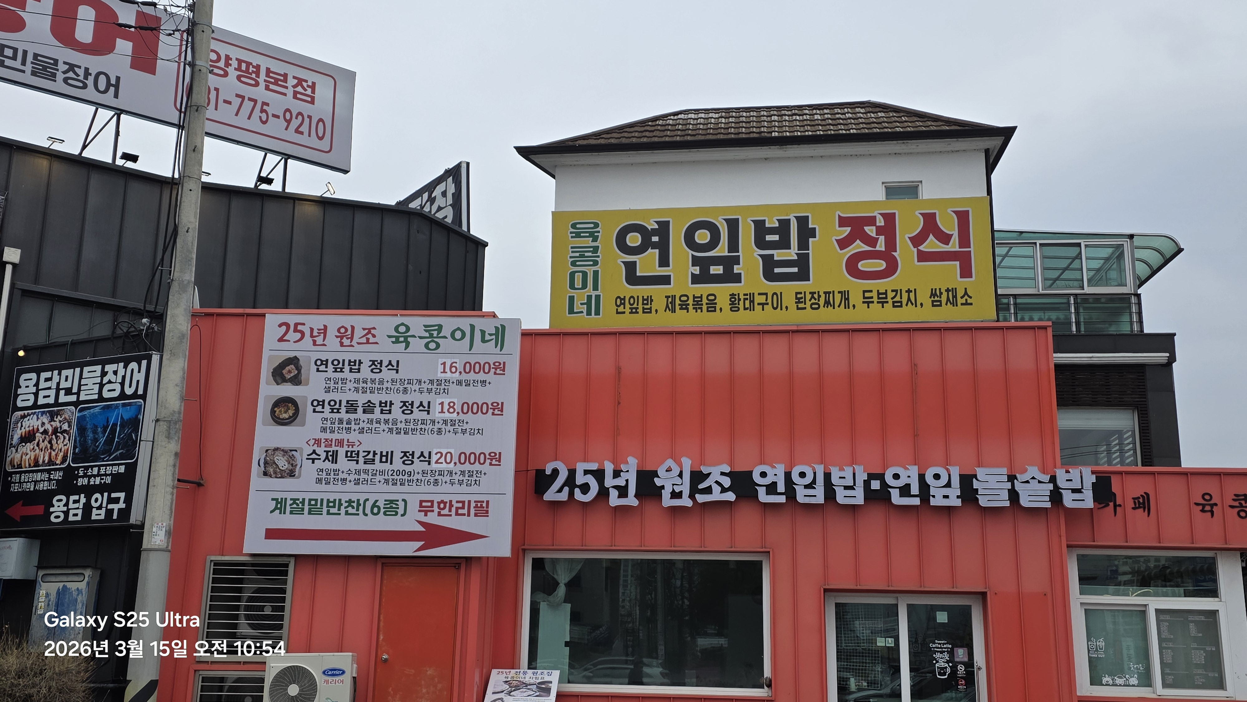 세미원 앞 육콩이네 식당에 왔는데 낧니가 안좋아 차가 안막혀 30분 일찍 도착했다
