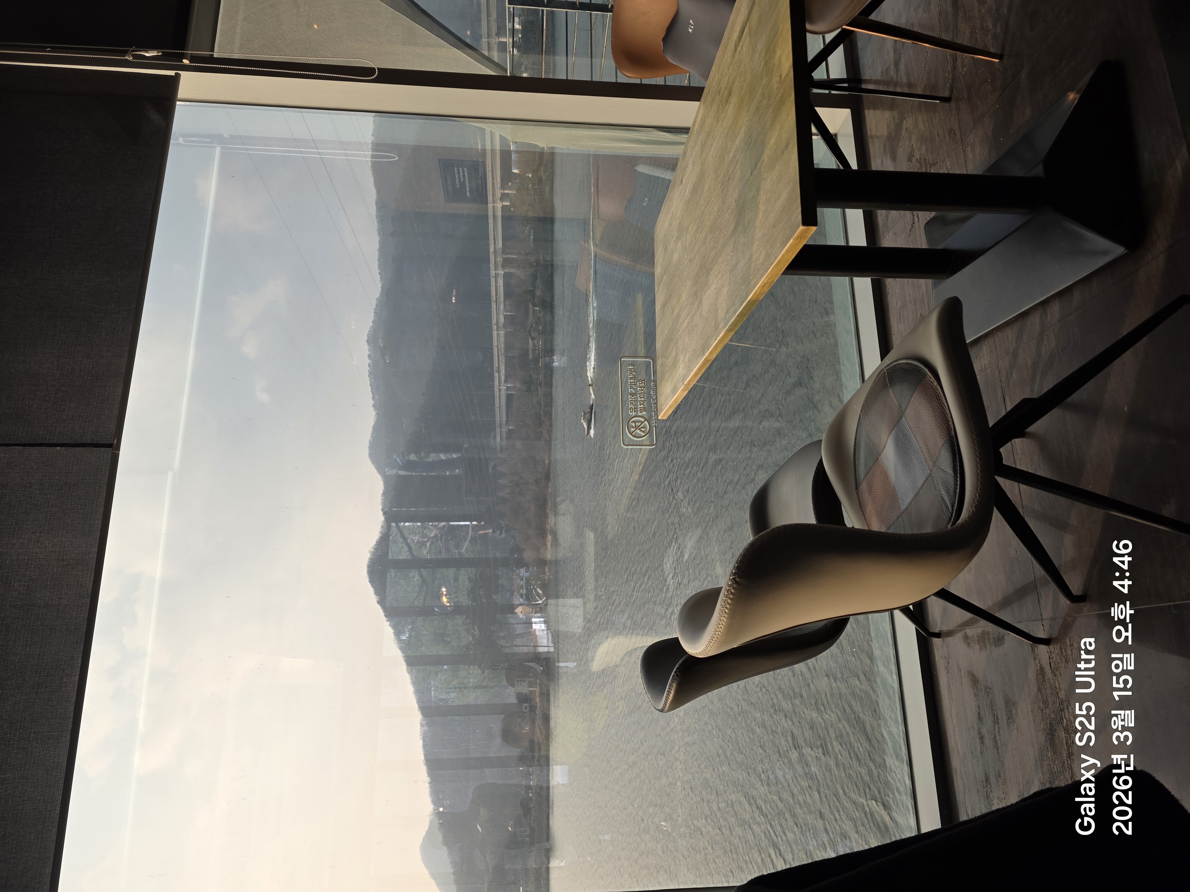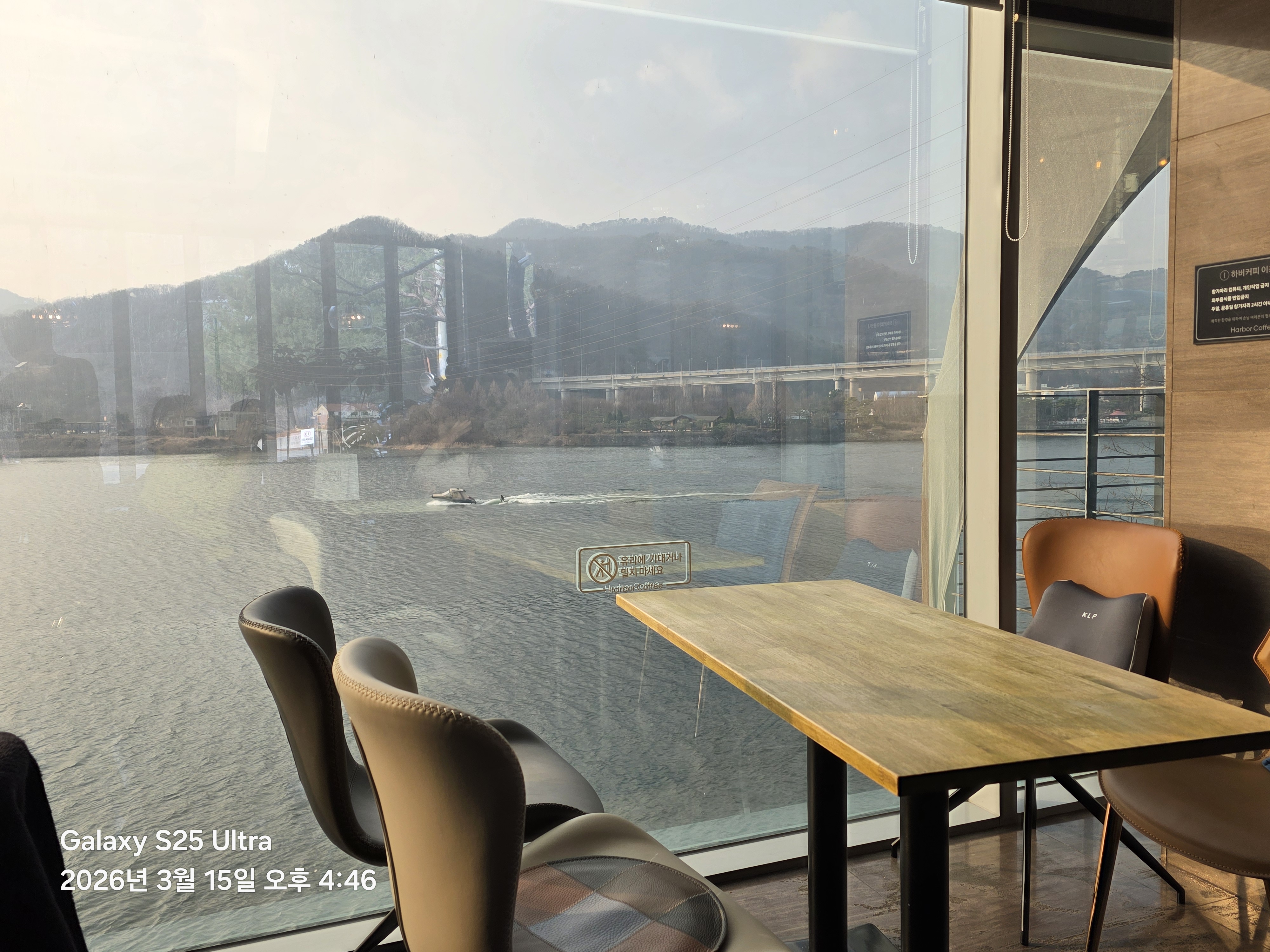 창가자리에서 북한깅 을 조망할 수 있어서 좋다