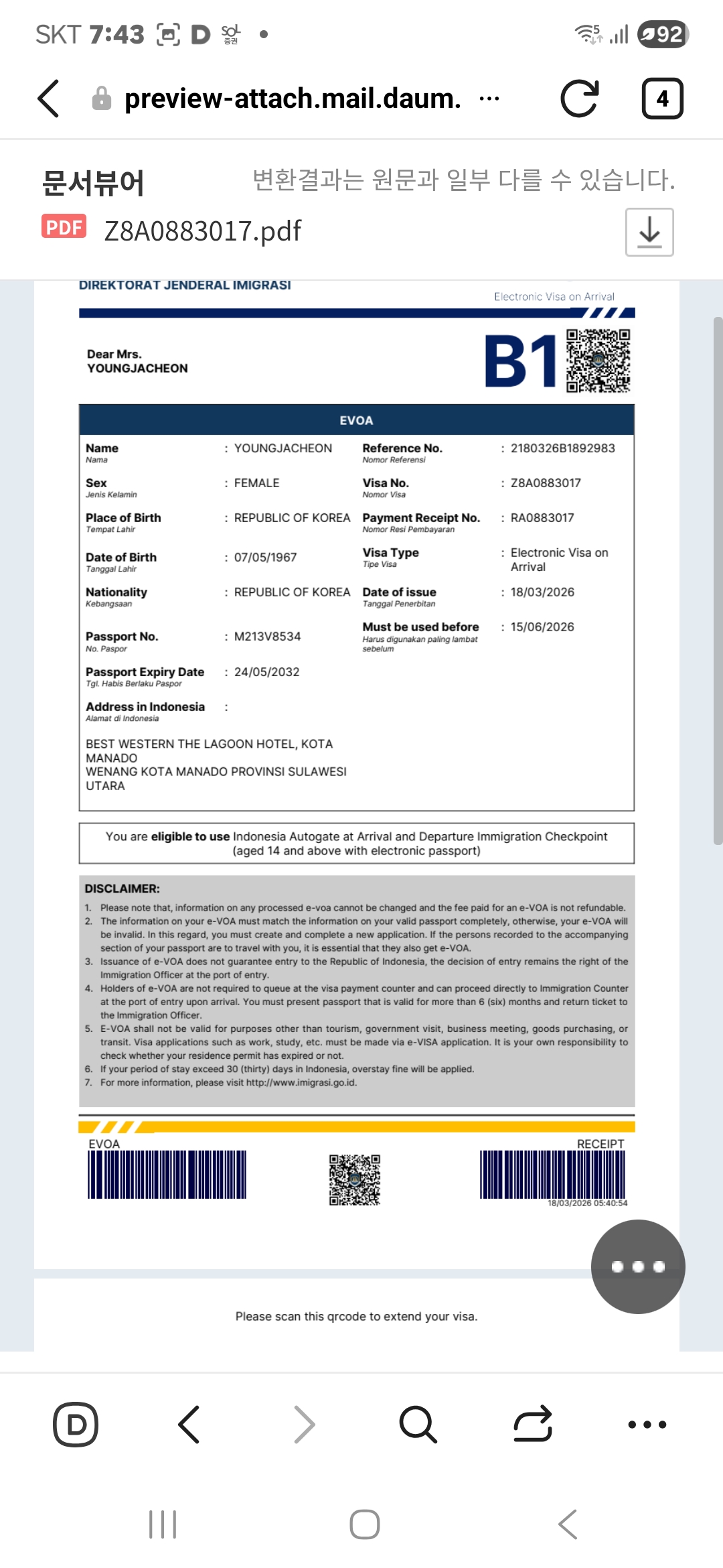 인도네시아 비자 계속 쓸수 있을까?