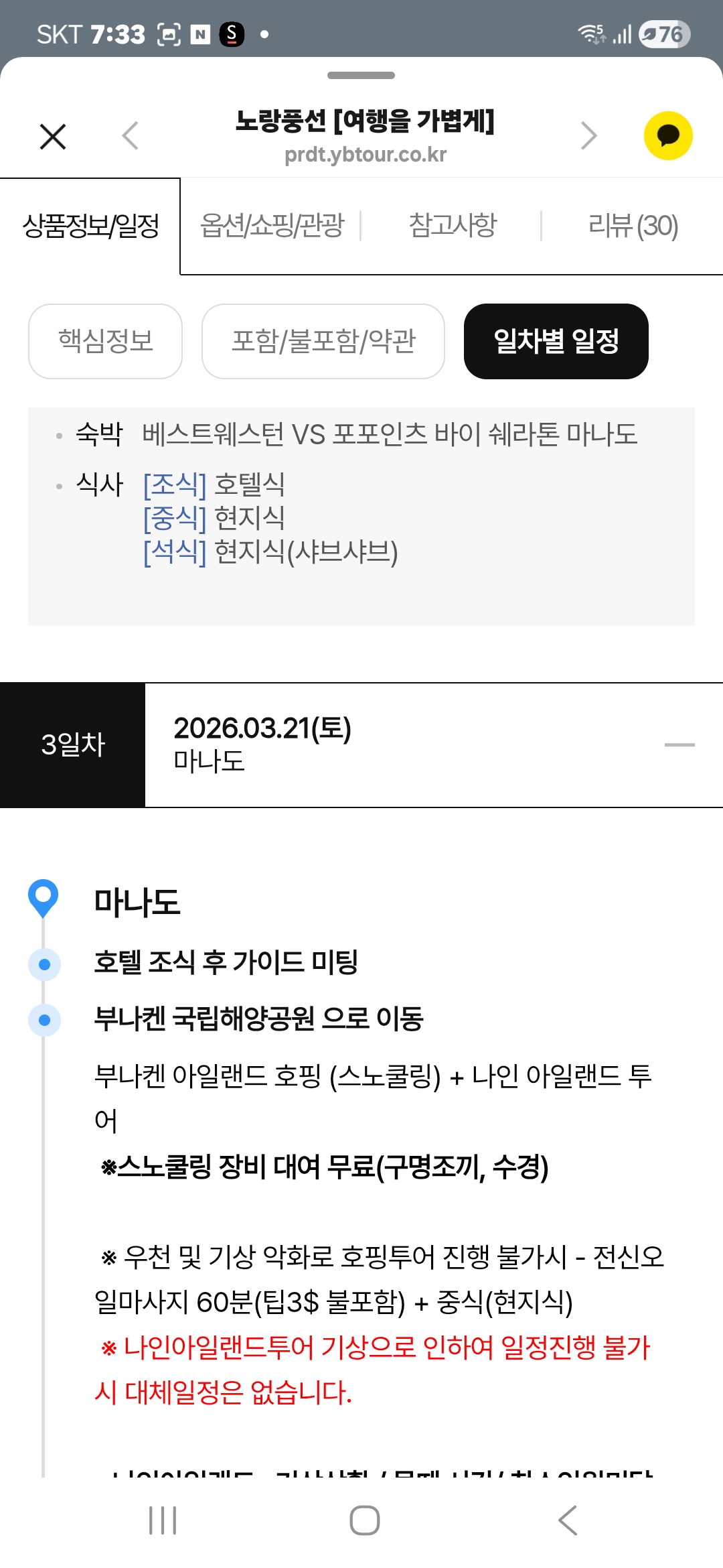 노랑풍선 인도네시아 마나도 일정표