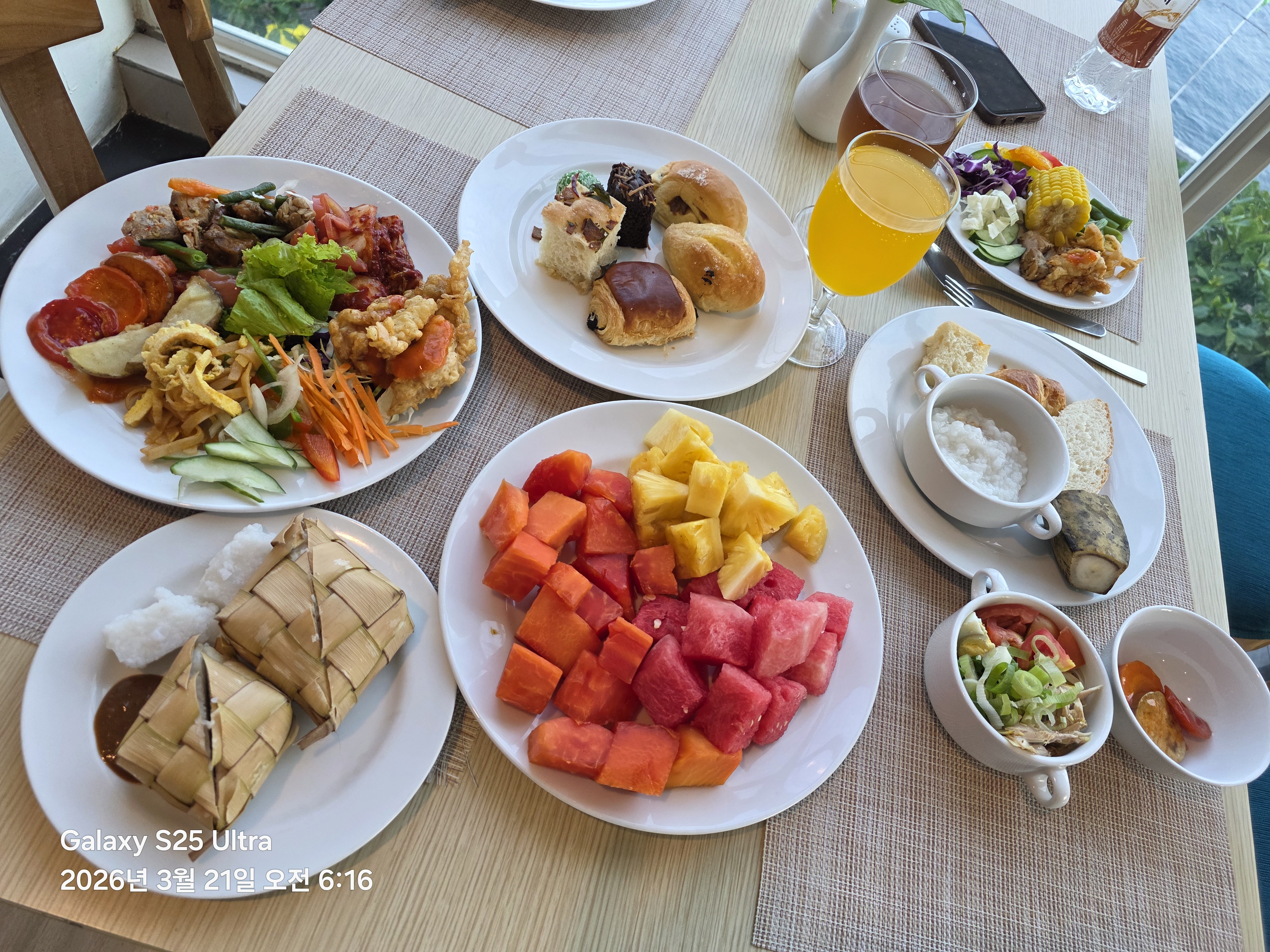 코코넛 밥과 떡은 맛이 없고 리필 안되는 과일은 실컷 먹었다 ㅎ 싸구려 냉차맛 나는 오렌지 쥬스와 자스민티 는 적응이 안된다 ㅠ