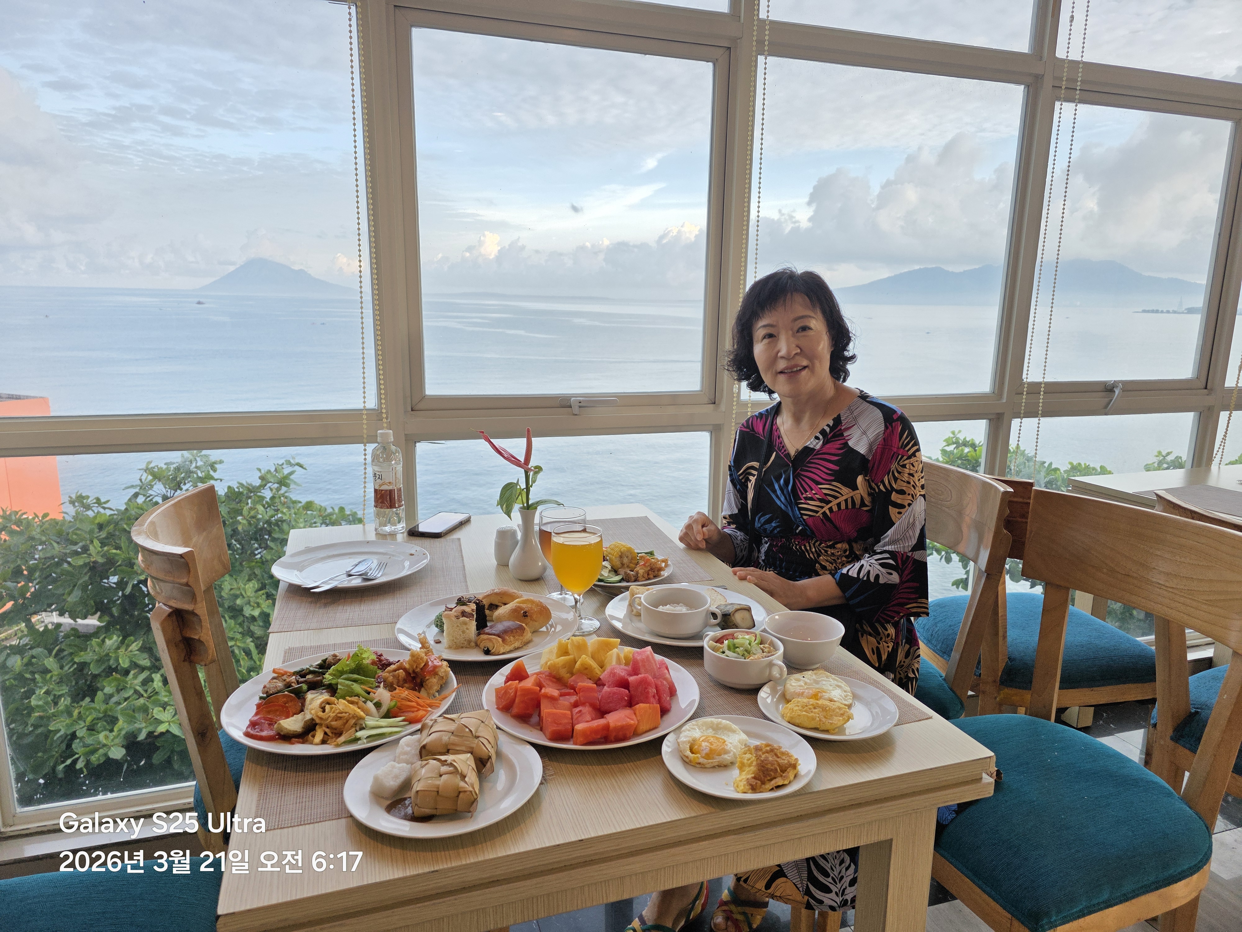 제일 좋은 창가자리 에 앉아 음식을 다 가져다놓고 천천히 아침식사를 즐긴다 ㅎ