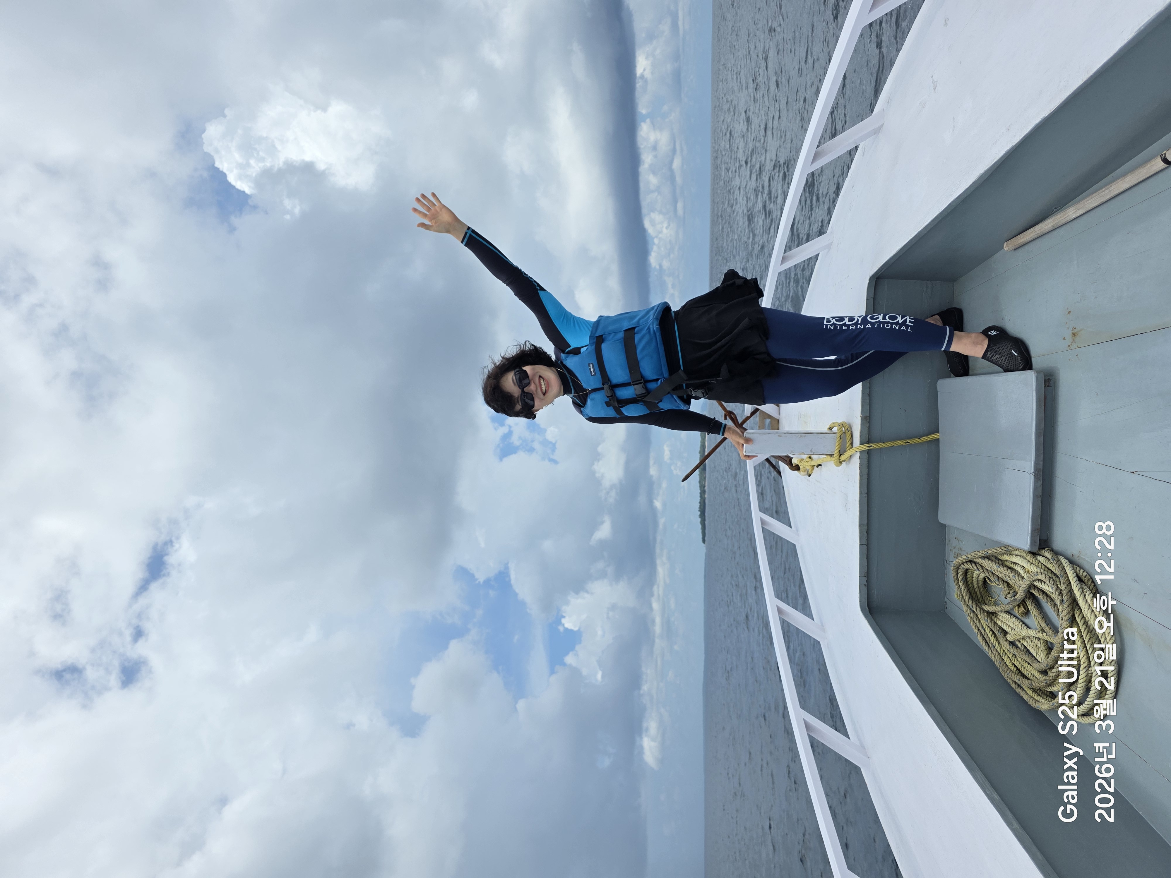 배에 탑승해 갑판에서 인증사진